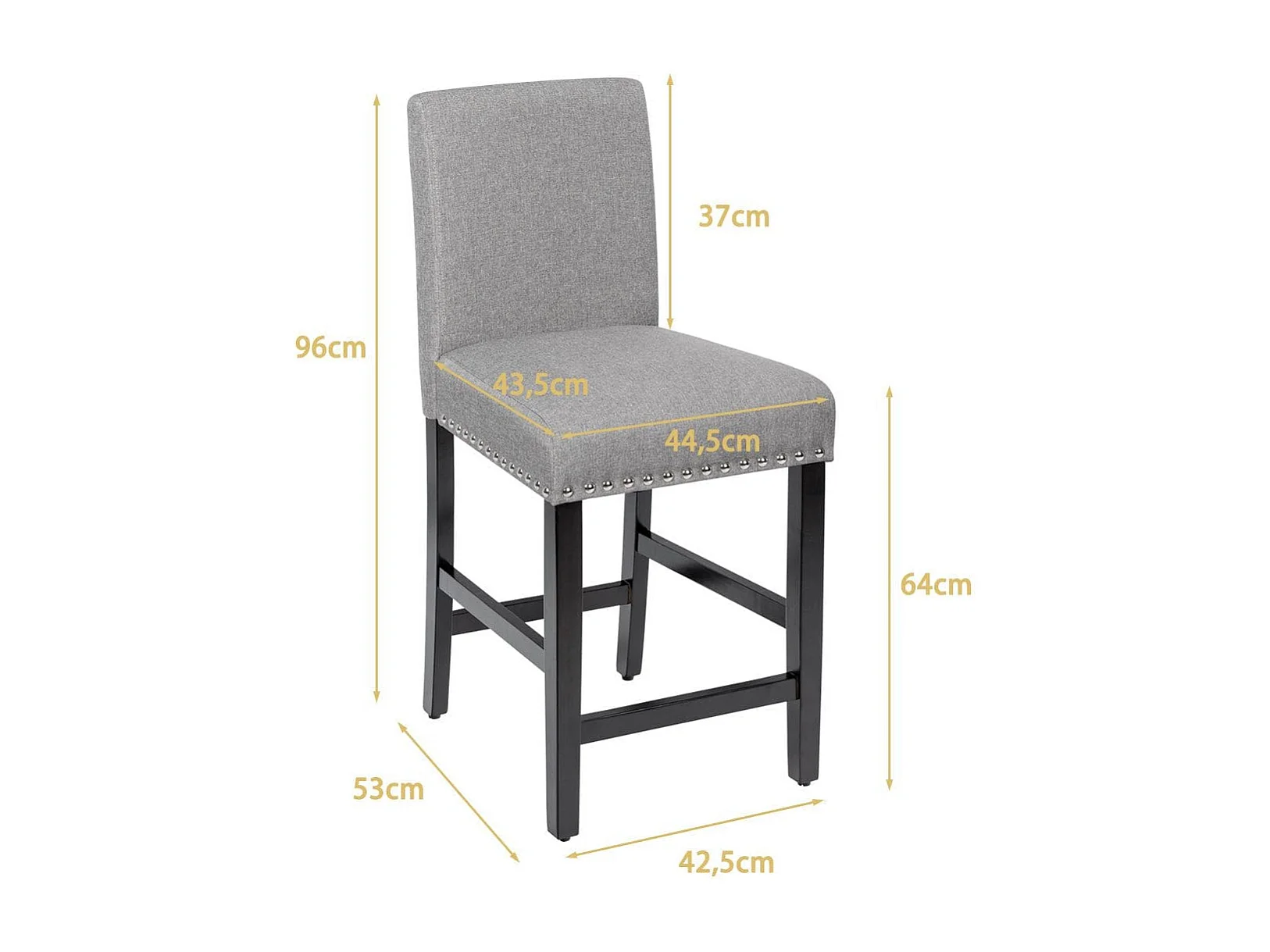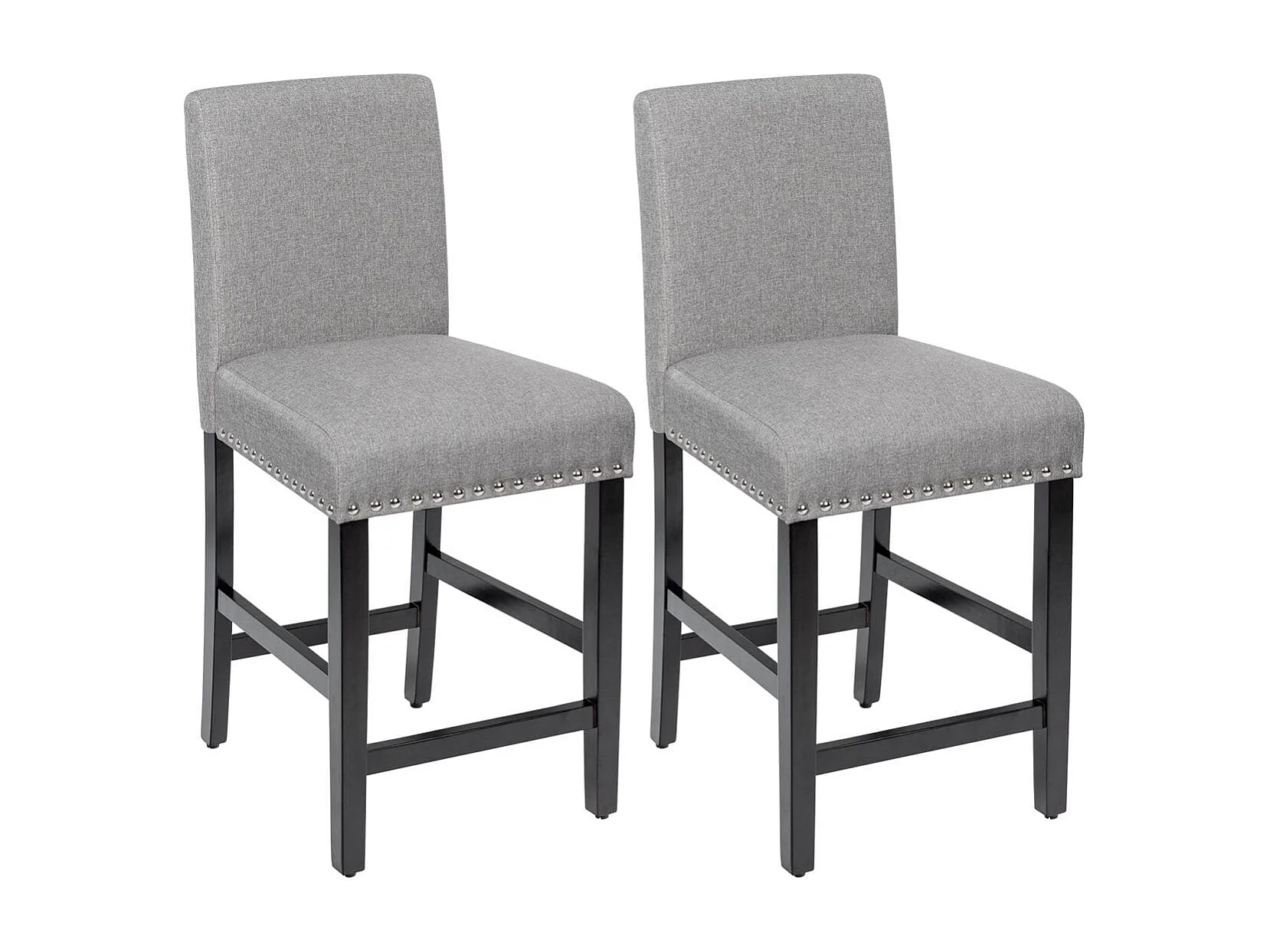 2er Set Barhocker mit Beinen aus Gummiholz & Atmungsaktivem Leinengewebe Barstühle Grau