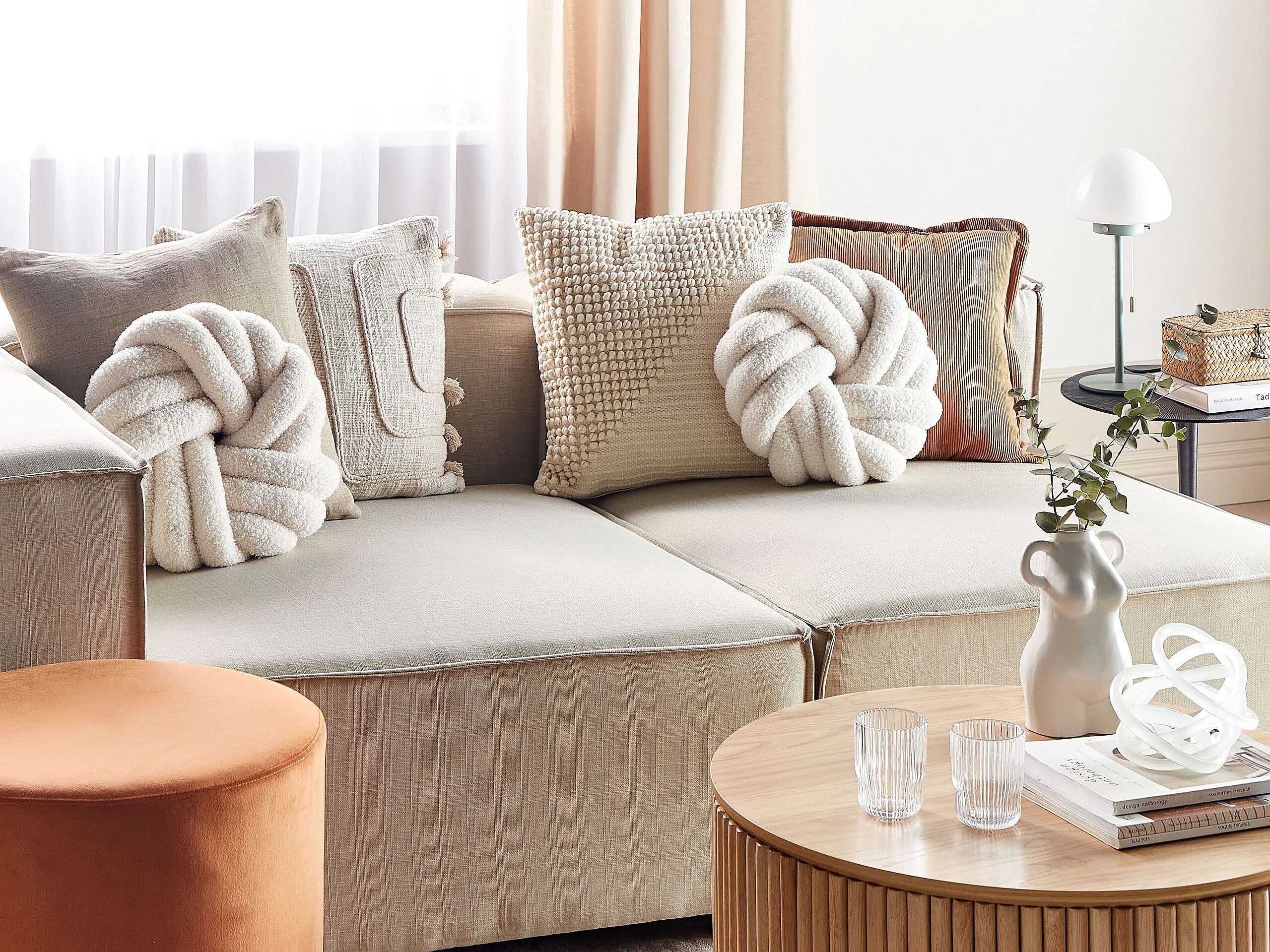 Decke Baumwolle gestrickt beige mit Quasten 150 x 200 cm Kuscheldecke Vella