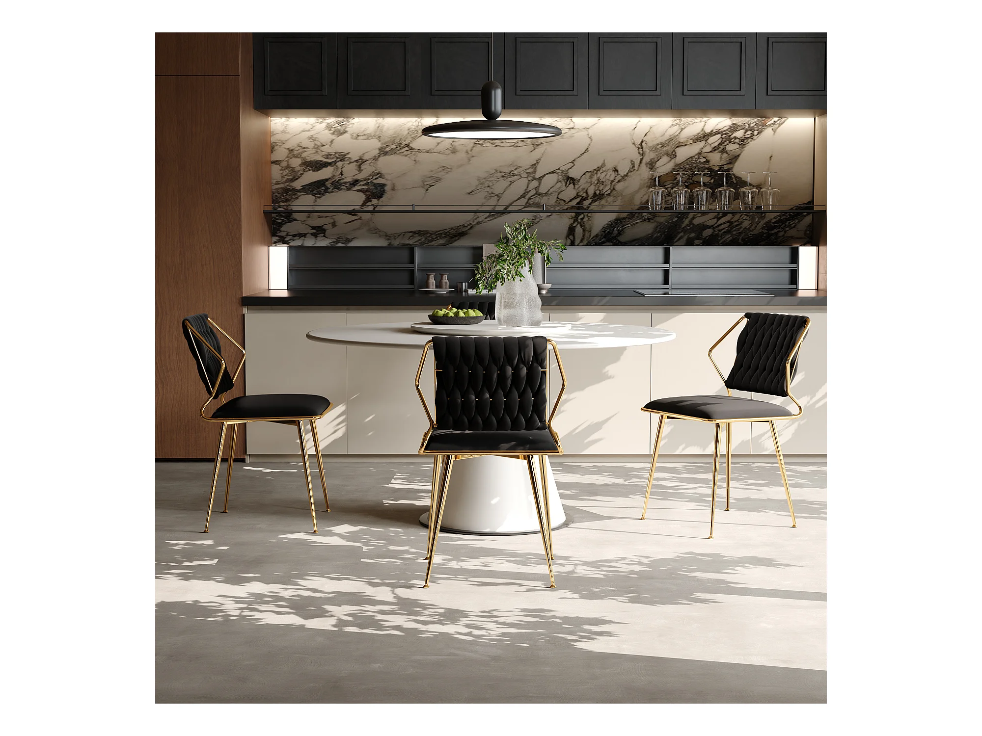 2er-Set Luxus-Esszimmerstühle aus Samt, ergonomisches Design, Metallbeine, Schwarz
