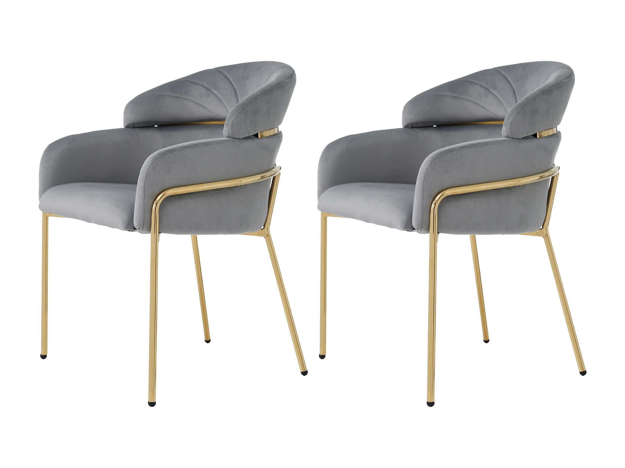 2er-Set Samtstühle - 79 x 45 x 53 cm - für Wohnzimmer und Schlafzimmer - vier Metallbeine - grau