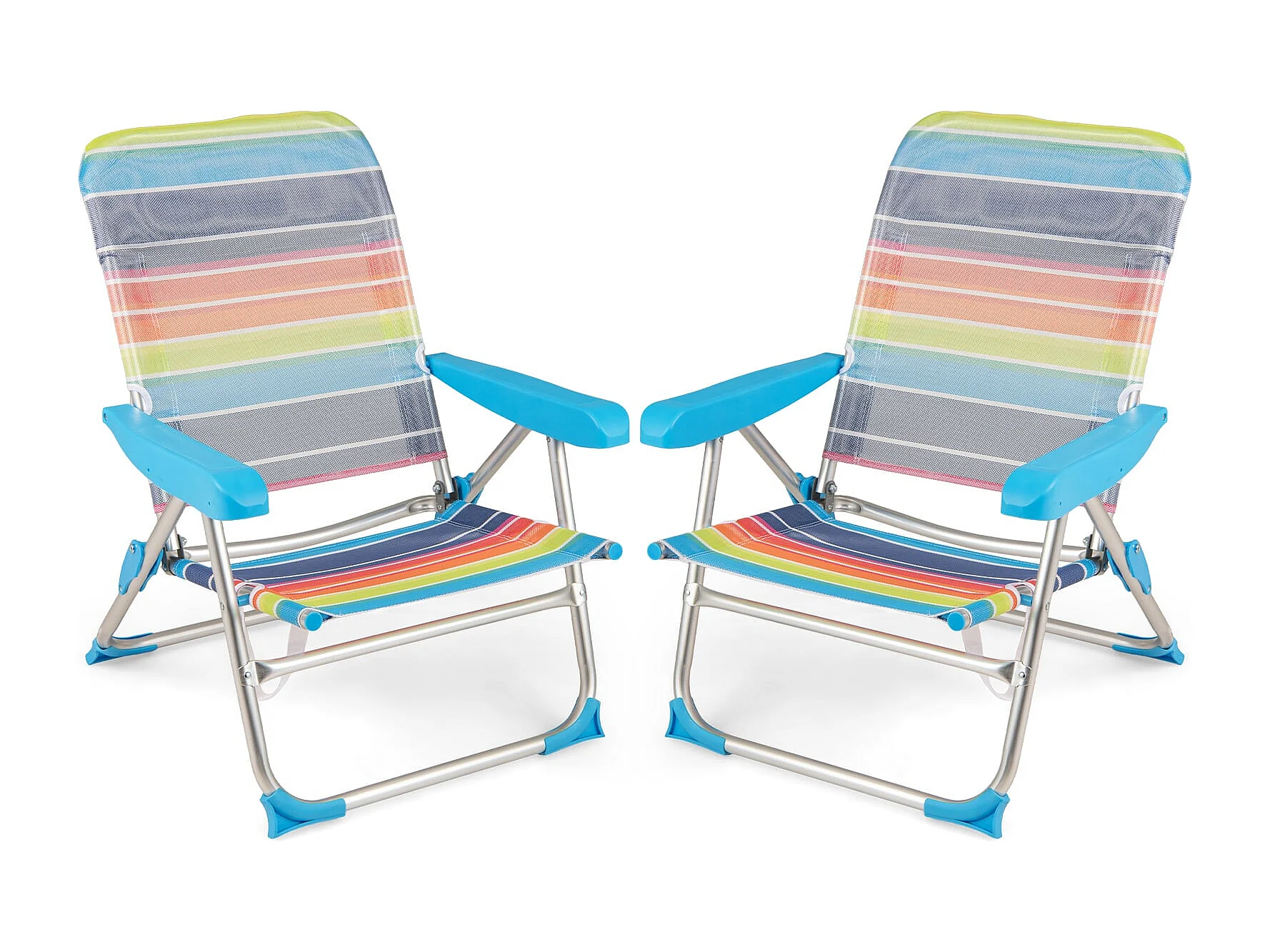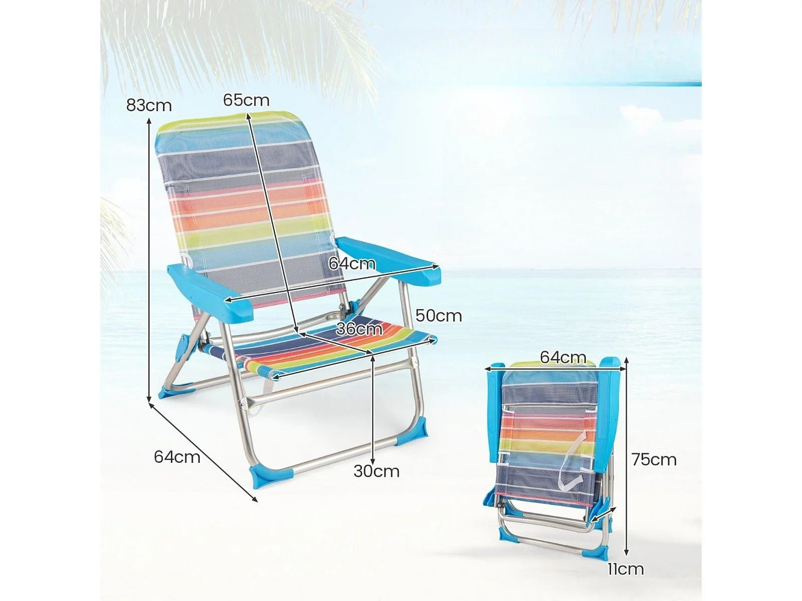 2er Set Strandstuhl faltbarer Picknickstuhl mit 5 Positionen verstellbarer Rückenlehne mit Armlehnen Bunt