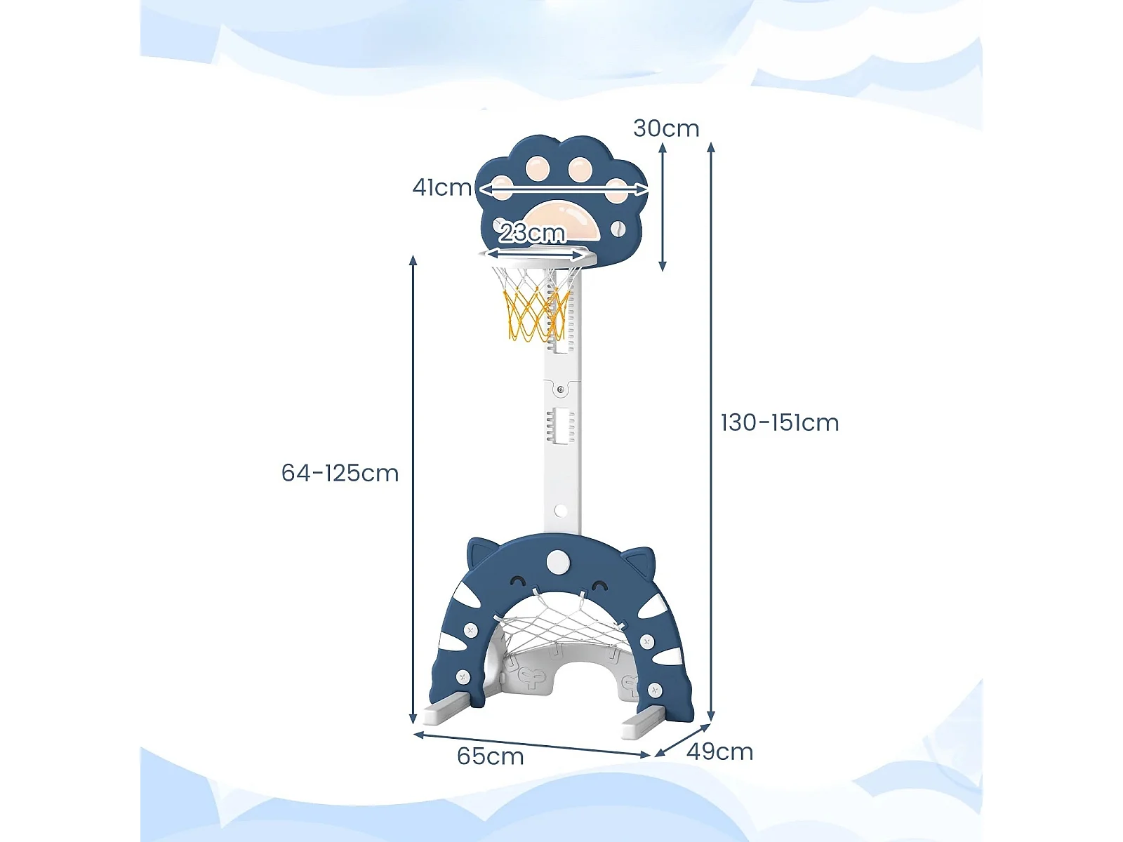 3 in 1 Kinder Basketballkorb mit Basketball & Fußball & Golfspiel Basketballständer Blau