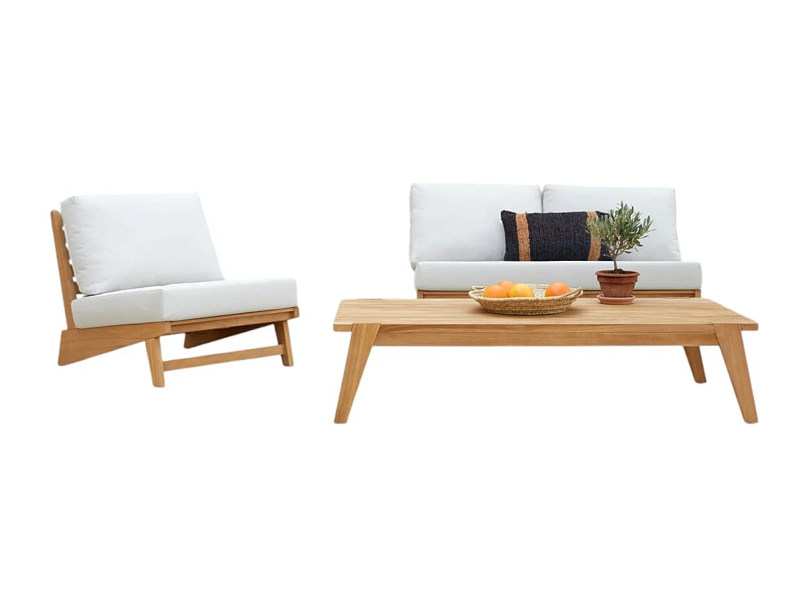 3-Sitzer-Gartenlounge Olia aus Teakholz und Stoff