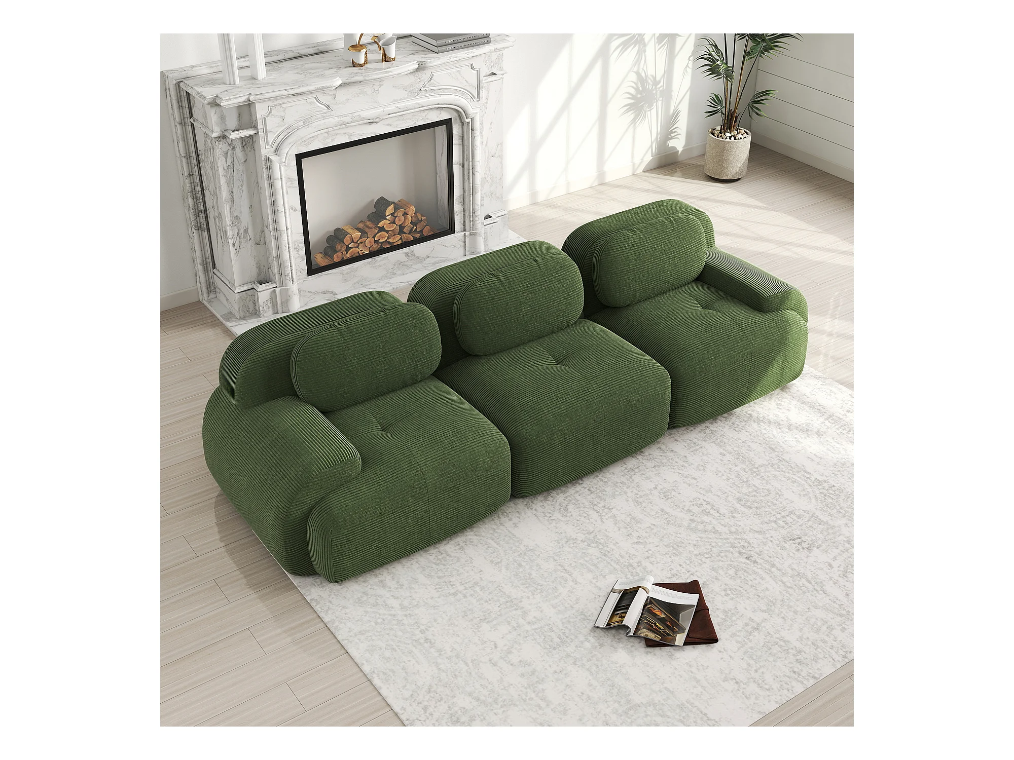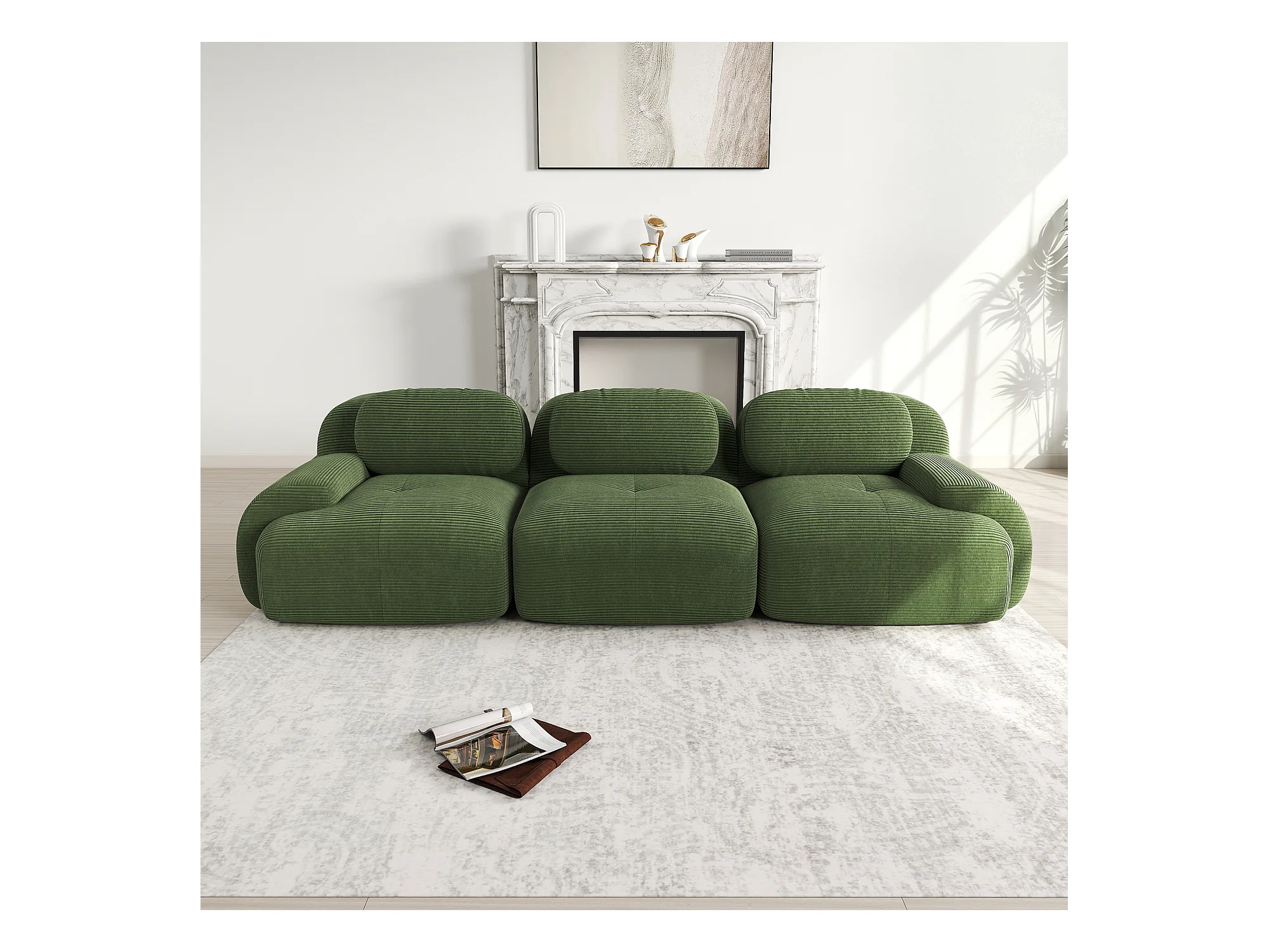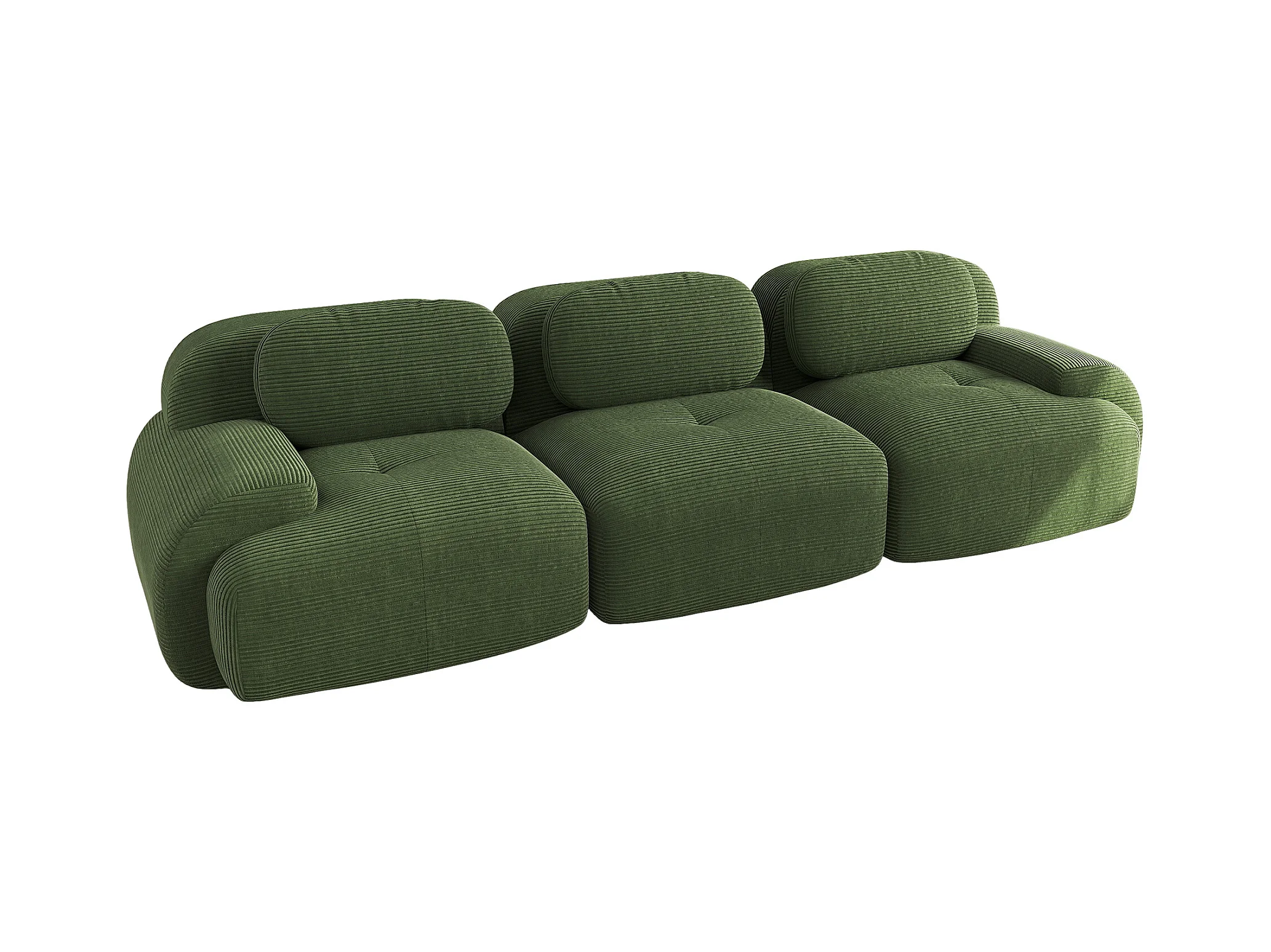 3-Sitzer-Modulsofa in Cordsamt, ergonomische Armlehnen, elastische Polsterung, grün (190x90x80 cm)