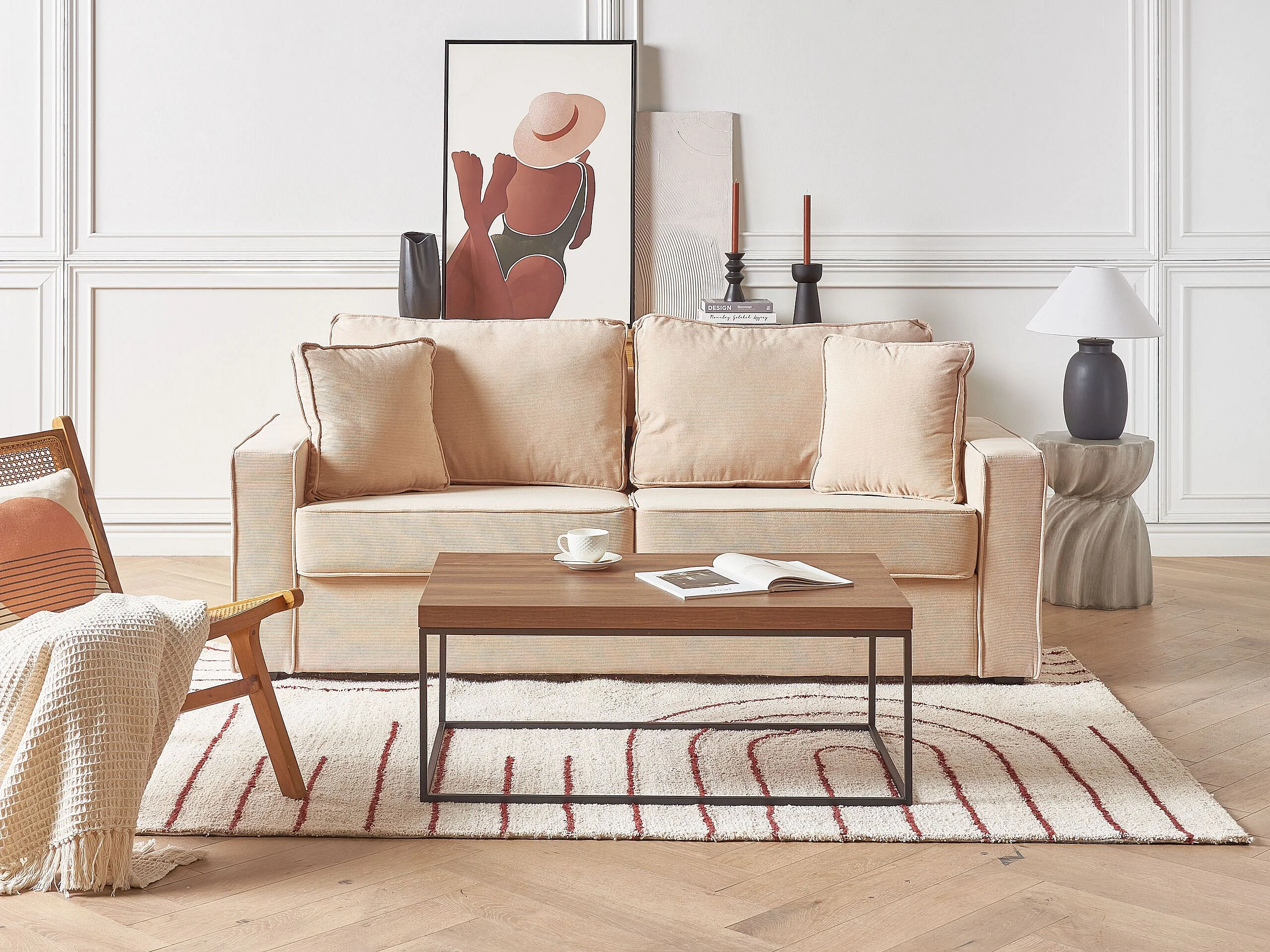 Dreisitzer Sofa beige Cord mit Kissen Armlehnen freistehend modern Falun