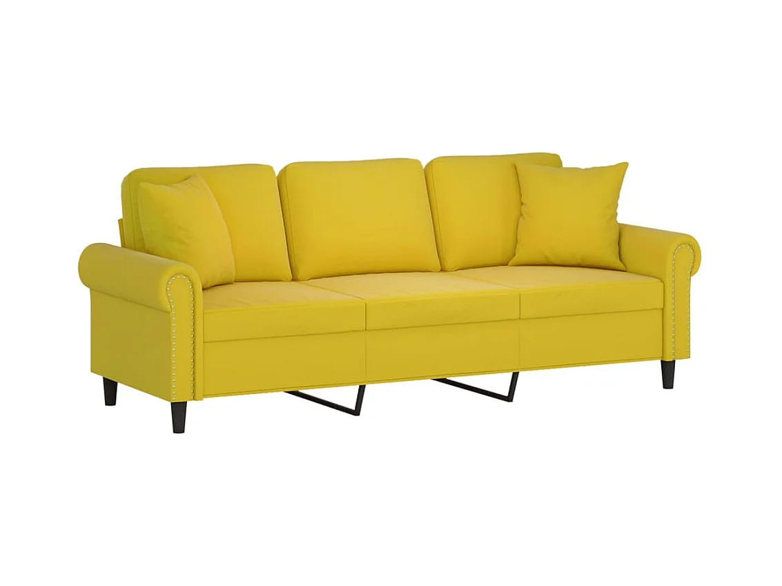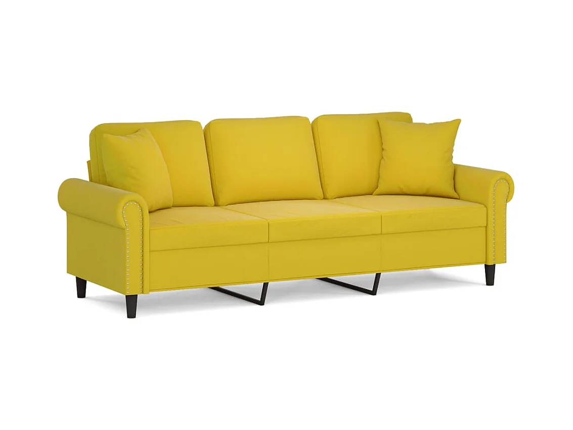 3-Sitzer-Sofa mit Dekokissen gelb 180 cm Samt