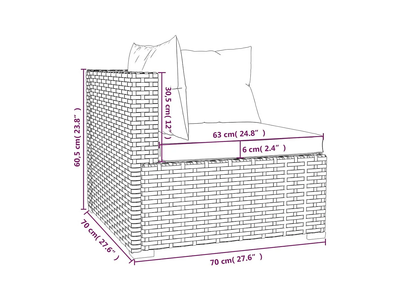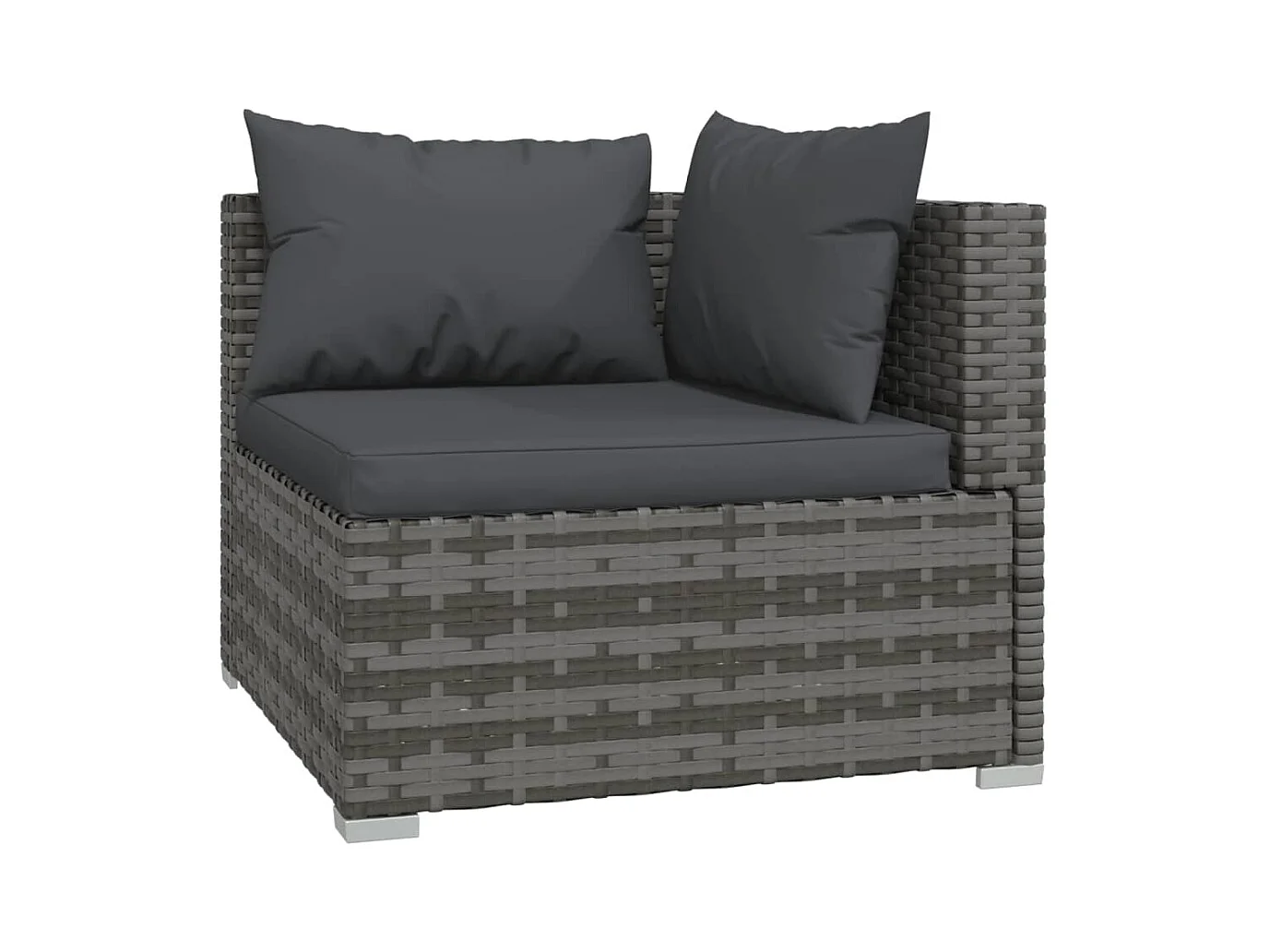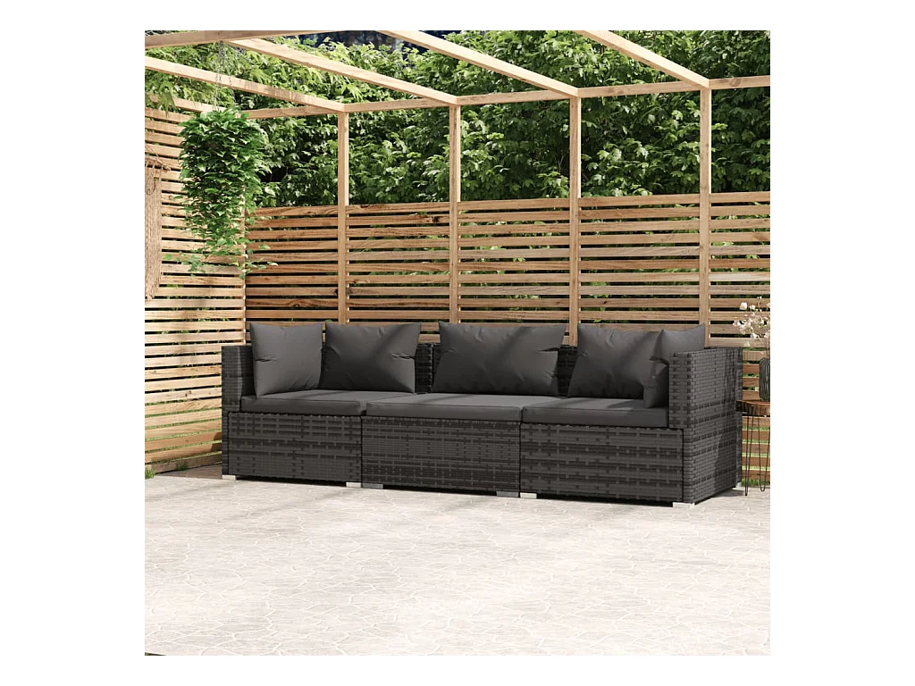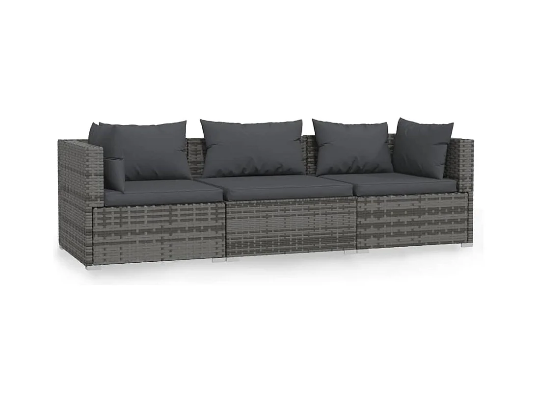3-Sitzer-Sofa mit Kissen Grau Poly Rattan