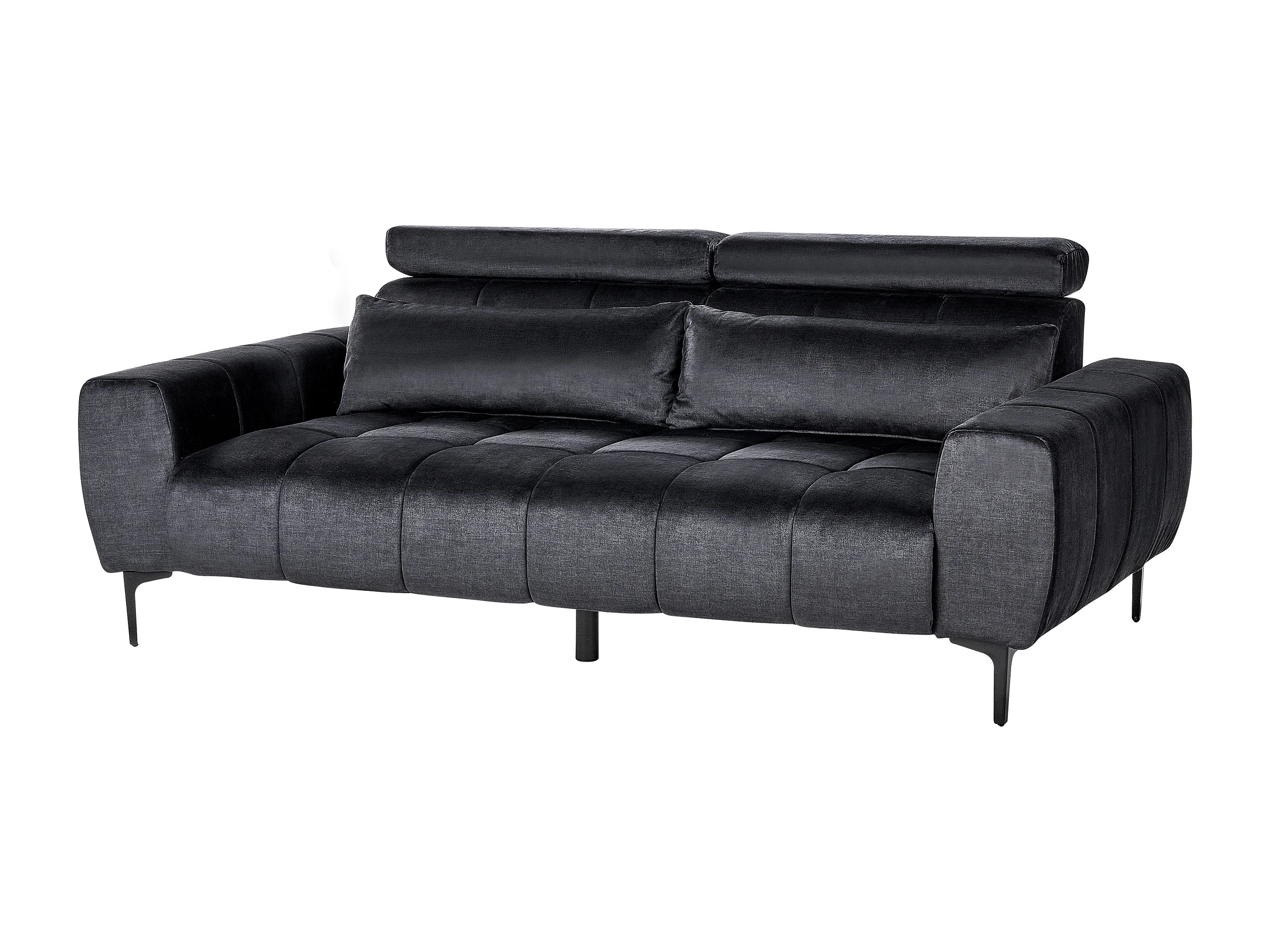 3-Sitzer Sofa Samt schwarz Rückenlehne & Kopfteil verstellbar mit Kissen Vegamo