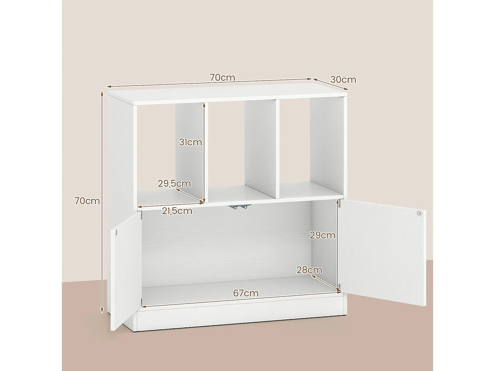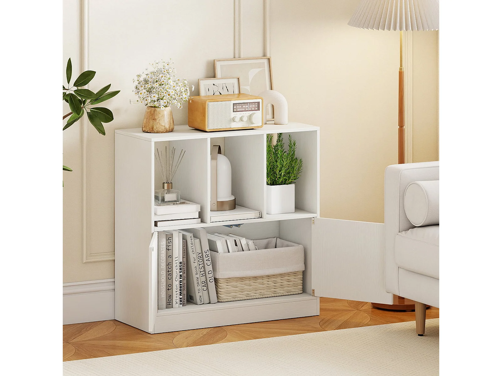 3-stöckiges Bücherregal mit 2 Türen Würfelregal mit Offenen Fächern & Bücherschrank Weiß
