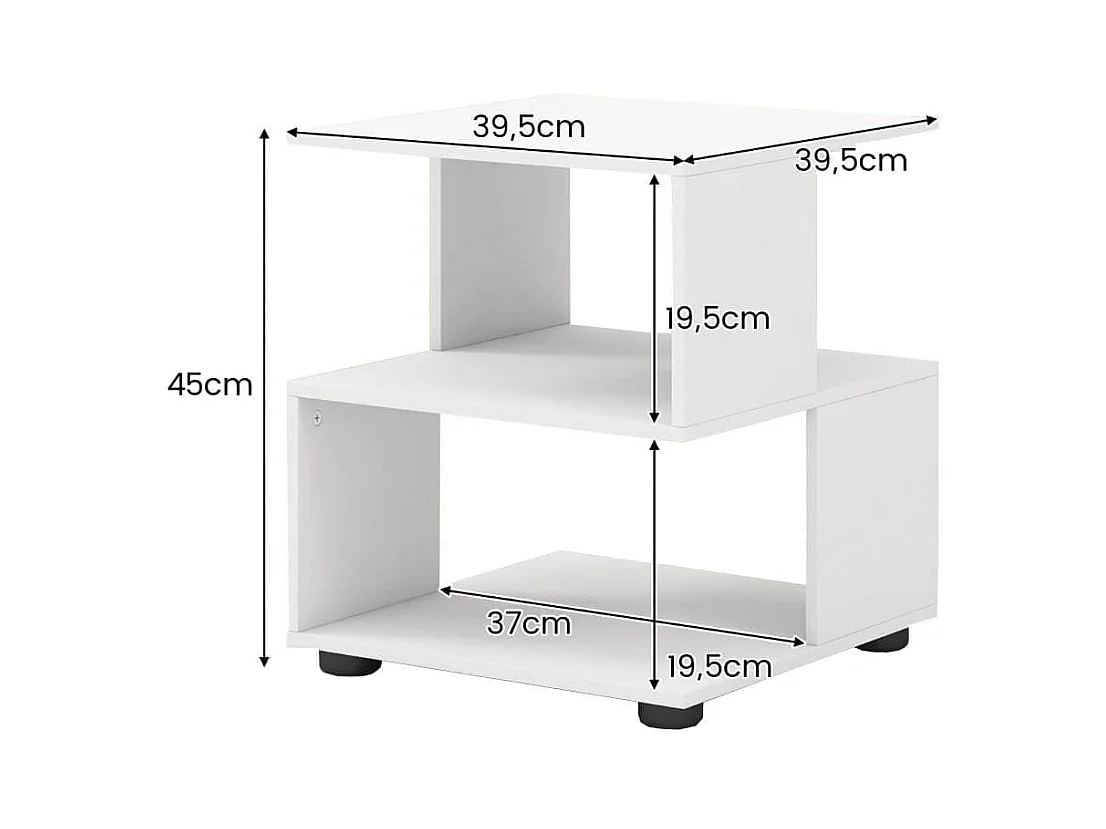 3-stufiger Beistelltisch moderner Nachttisch Couchtisch mit Ablageflächen 39,5 x 39,5 x 45 cm Weiß