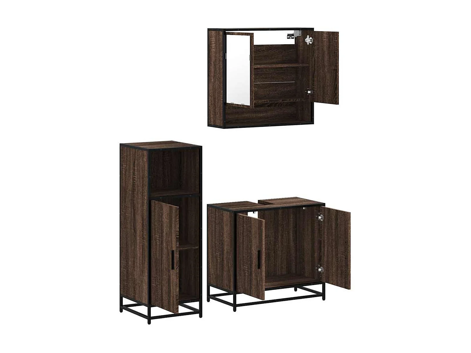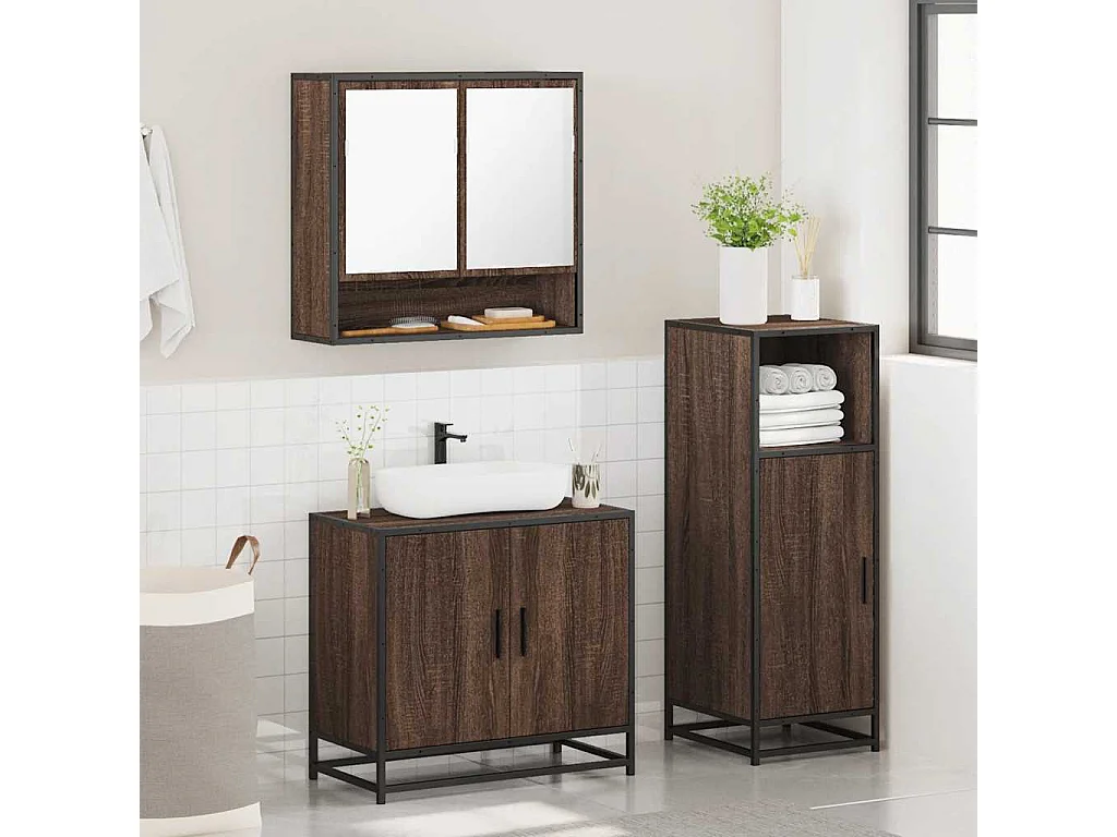 3-teiliges Badmöbel-Set Braune Eiche