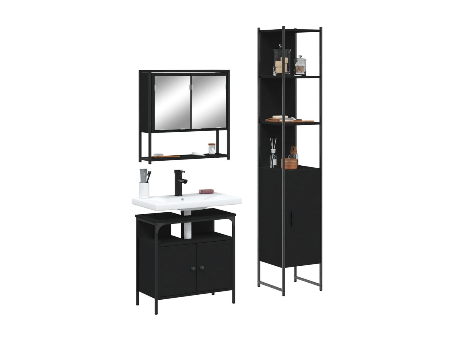 3-teiliges Badmöbel-Set Holzwerkstoff schwarz