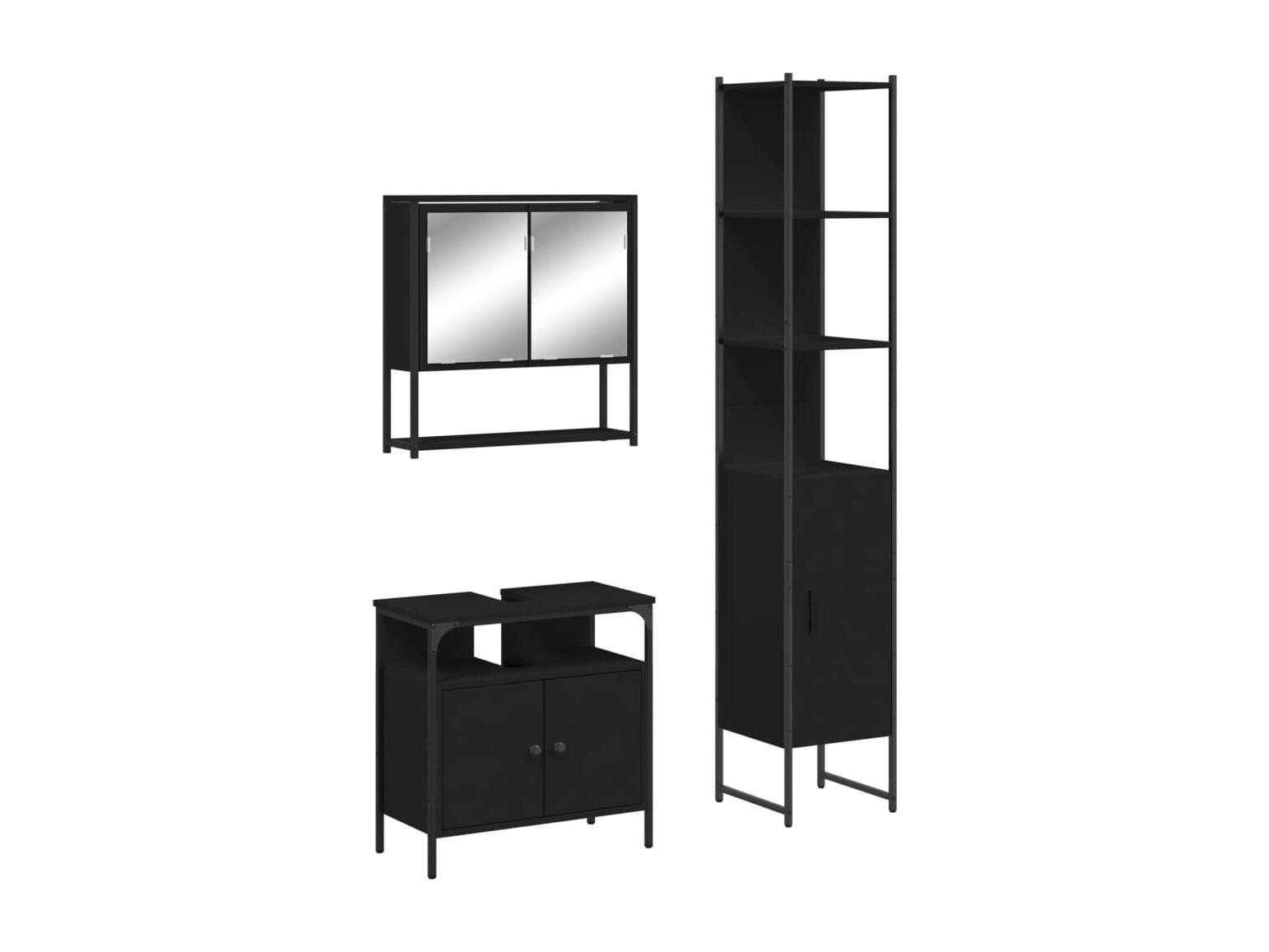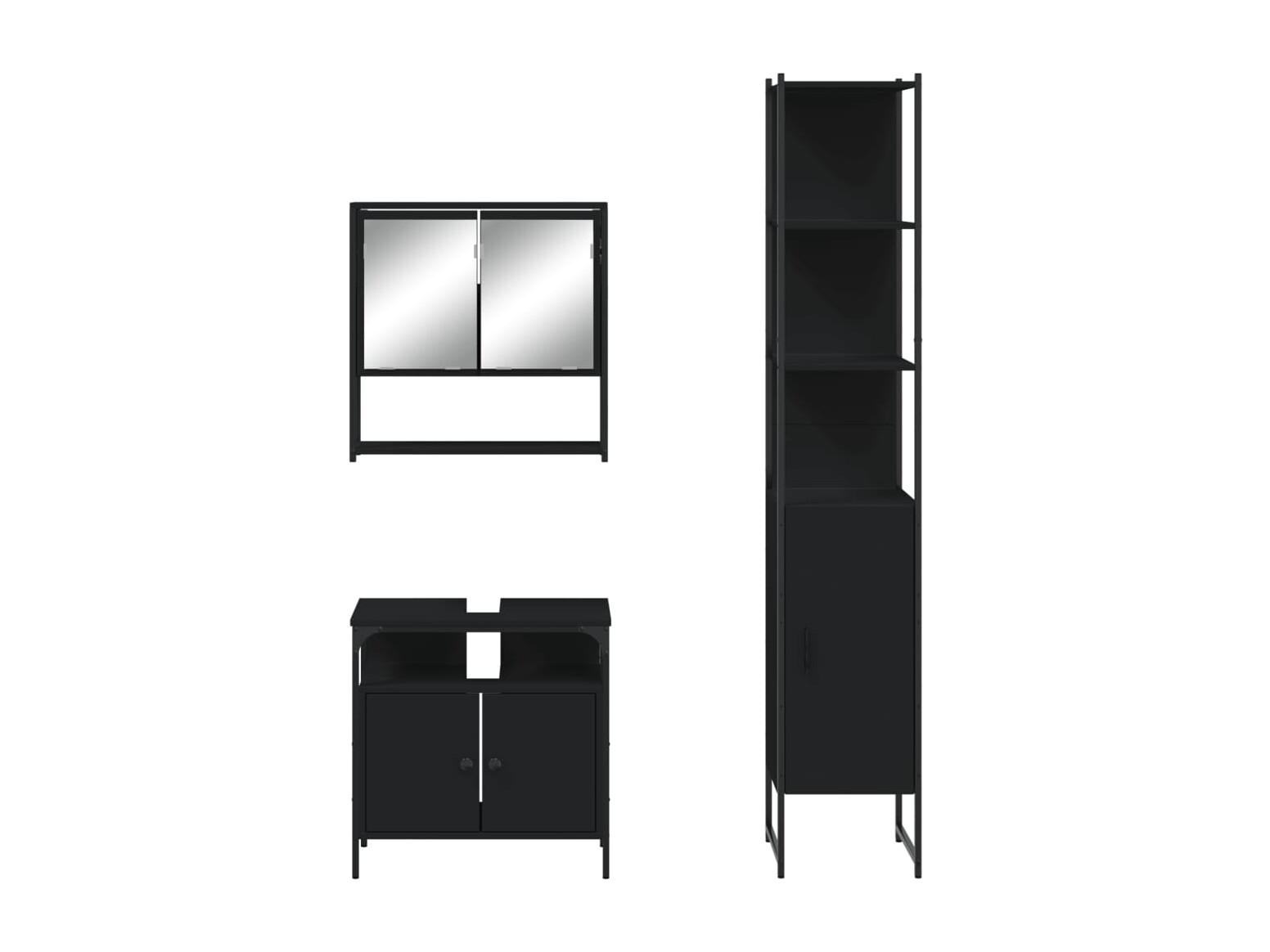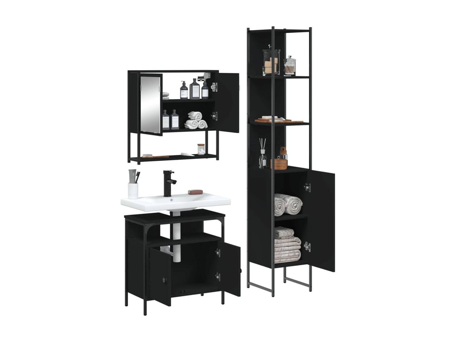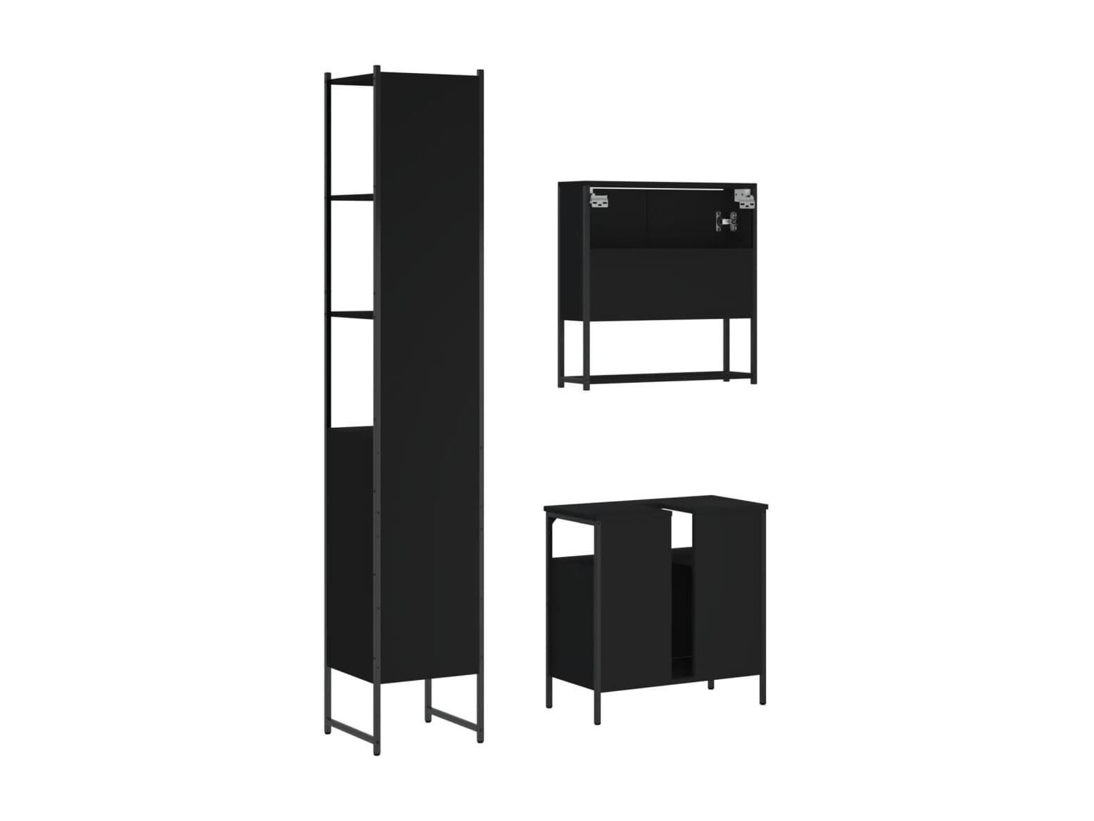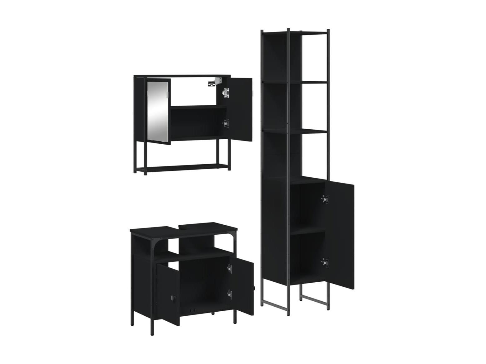 3-teiliges Badezimmerschrank-Set aus schwarzem Holzwerkstoff