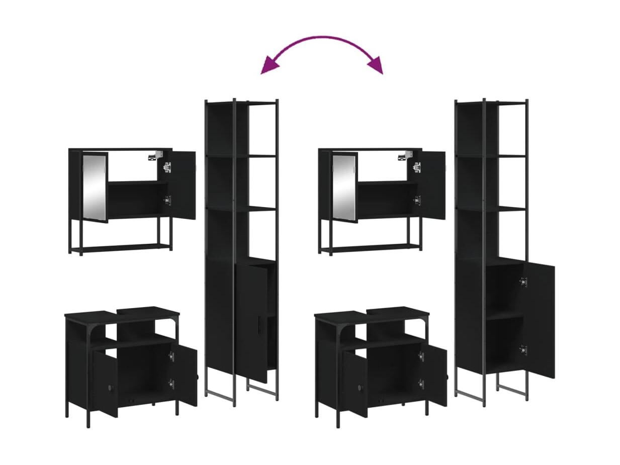 4-teiliges Badezimmerschrank-Set aus schwarzem Holzwerkstoff