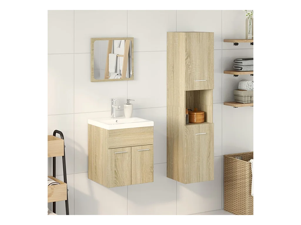 3-teiliges Badmöbel-Set Sonoma-Eiche