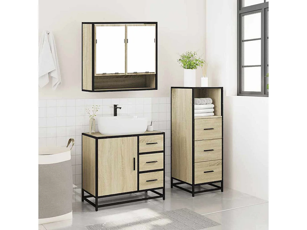 3-teiliges Badmöbel-Set Sonoma-Eiche