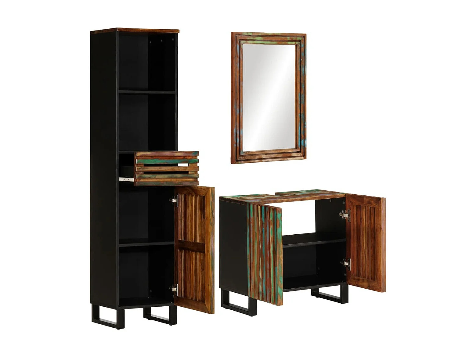 3-teiliges Badmöbelset aus massivem Akazienholz