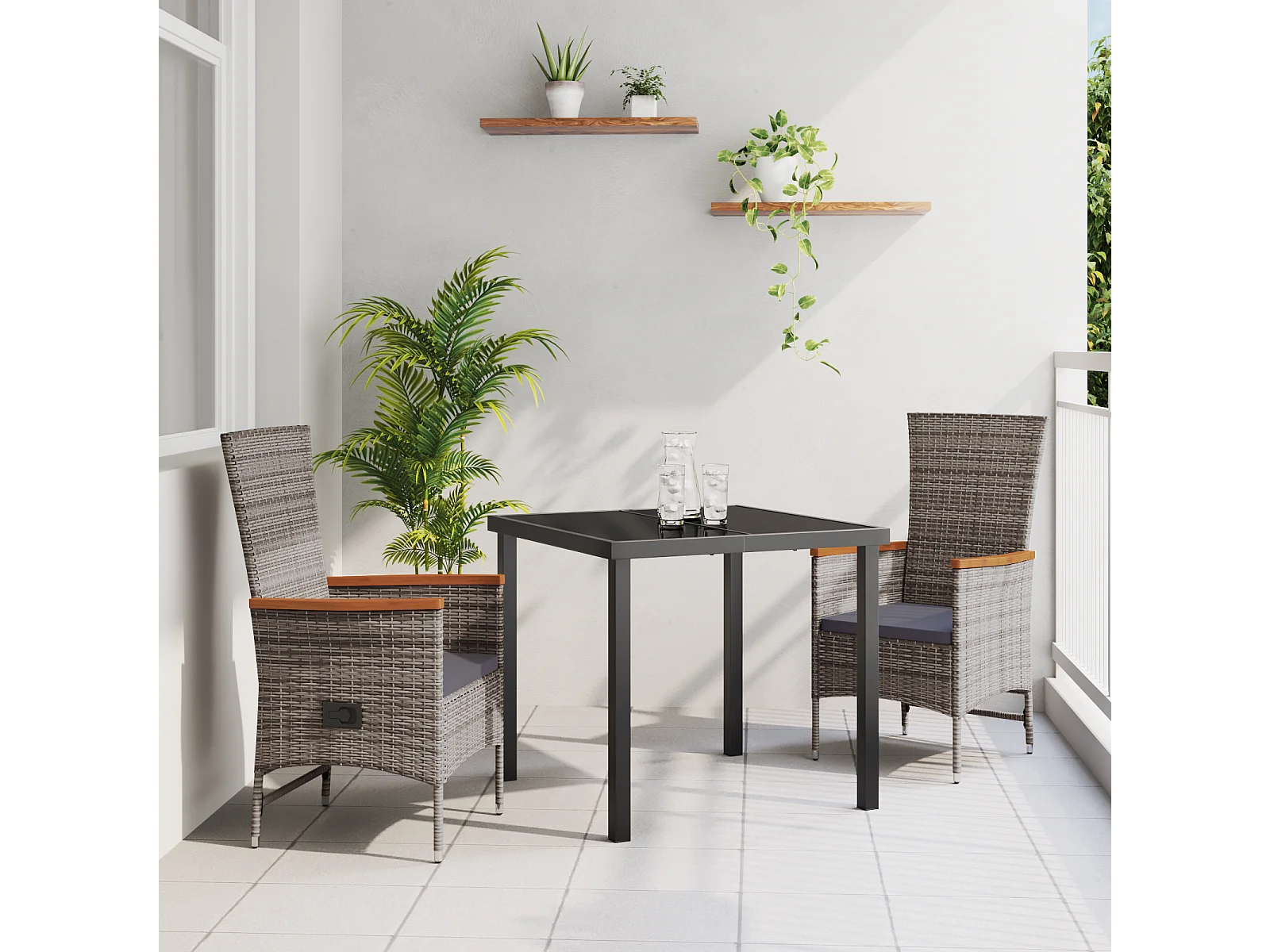 3-teiliges Garten-Bistro-Set mit grauen Polyrattan-Kissen