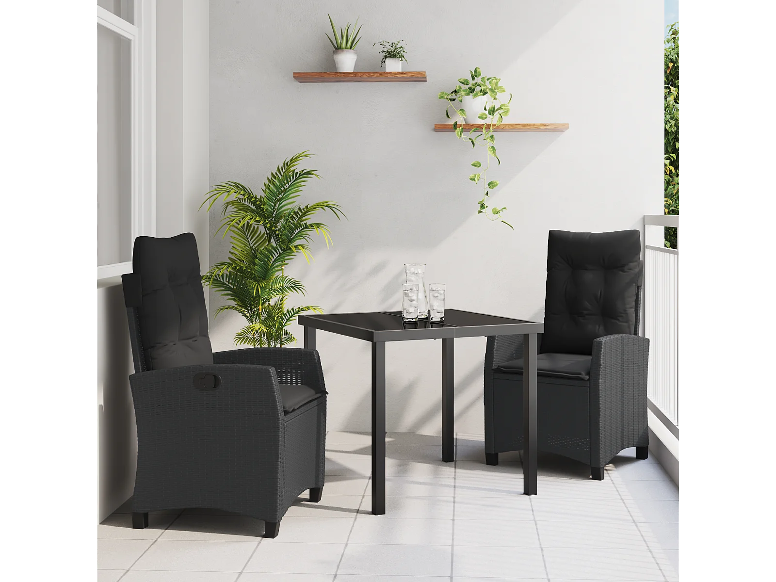 3-teiliges Gartenset Rattan Kunststoff schwarz