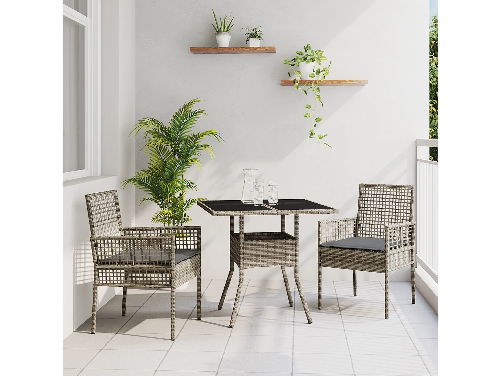 3-teiliges Gartenset - Graues Polyrattan