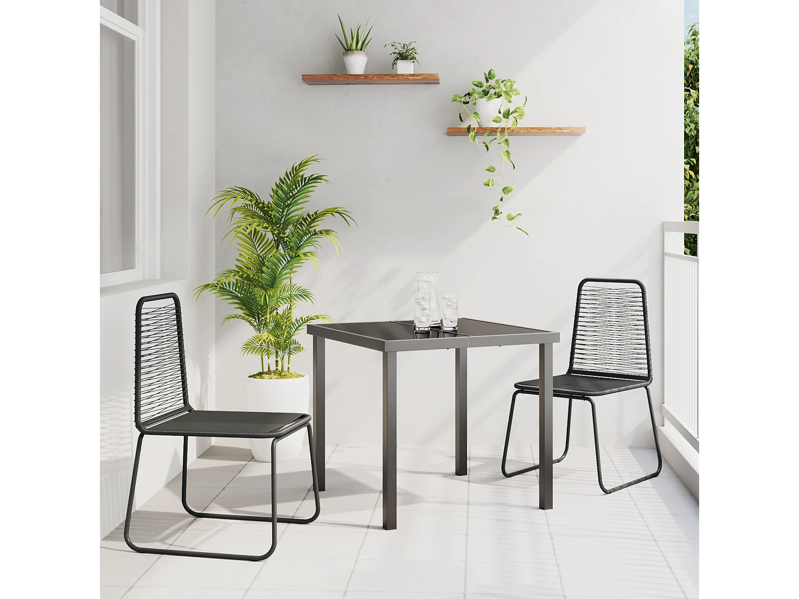 3-teiliges Garten-Esstisch-Set mit Kissen aus schwarzem Polyrattan
