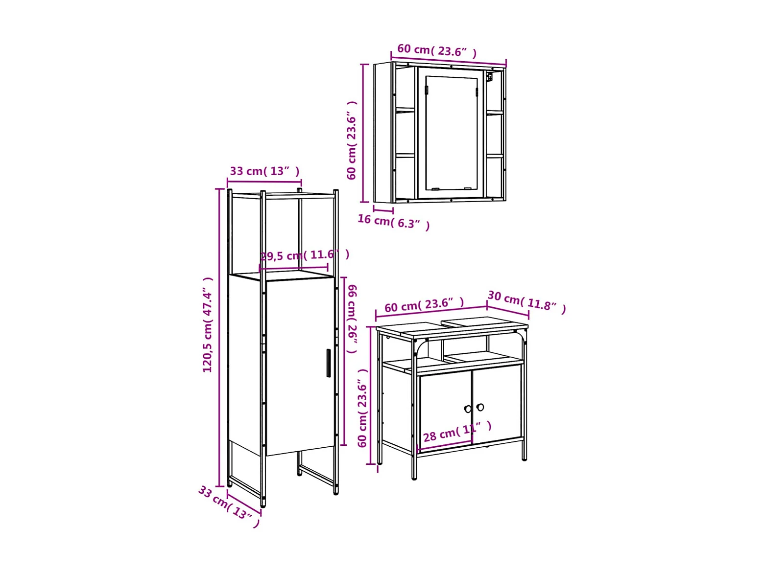 3-tlg. Badmöbel-Set Sonoma-Eiche Holzwerkstoff