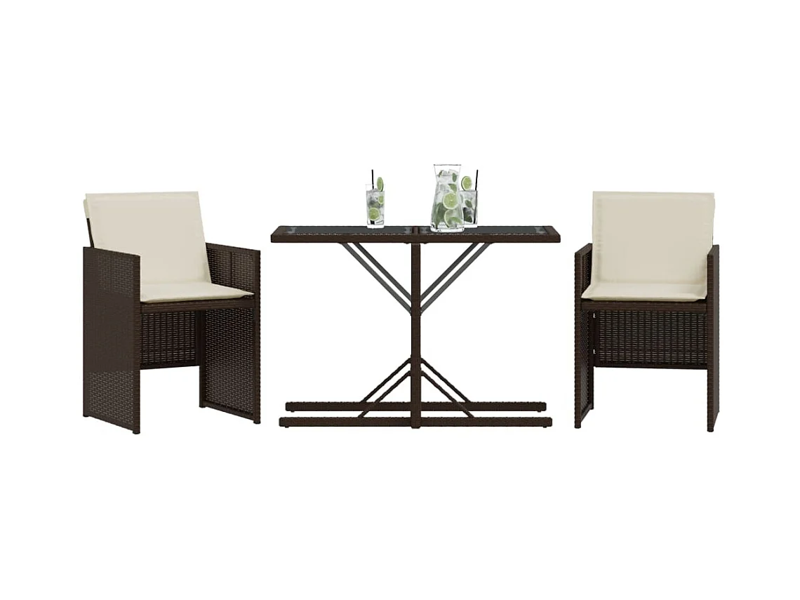 3-tlg. Garten-Essgruppe mit Kissen Braun Poly Rattan
