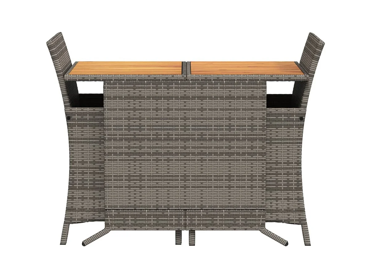 3-tlg. Bistro-Set mit Kissen Grau Poly Rattan
