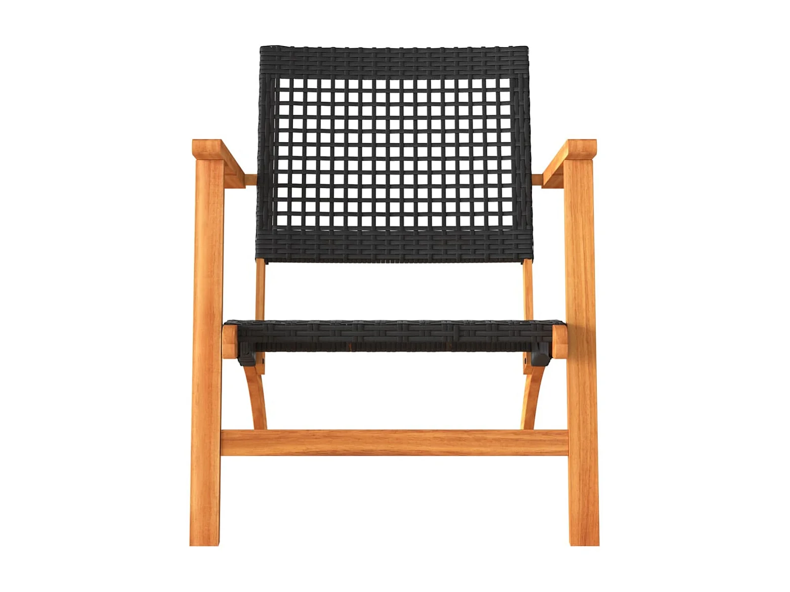 3-tlg. Bistro-Set Schwarz Poly Rattan und Massivholz Akazie