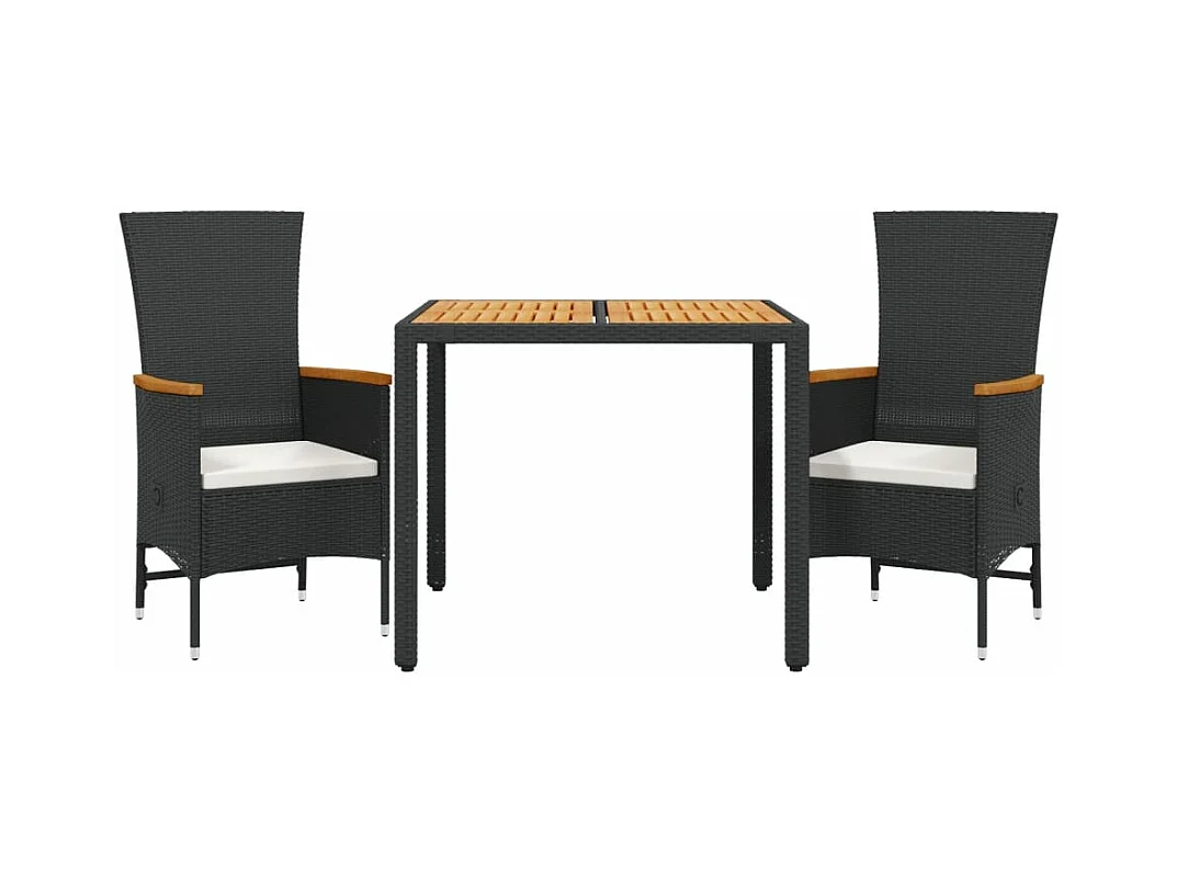 3-tlg. Garten-Essgruppe mit Kissen Schwarz Poly Rattan Akazie