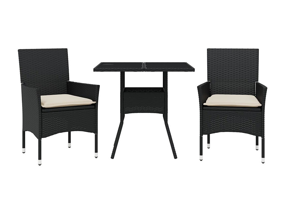 3-tlg. Bistro-Set mit Kissen Schwarz Poly Rattan