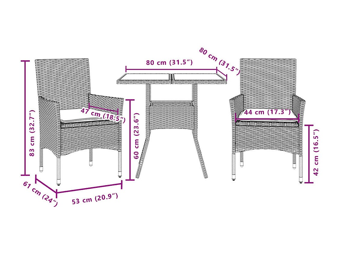 3-tlg. Garten-Essgruppe mit Kissen Schwarz Poly Rattan