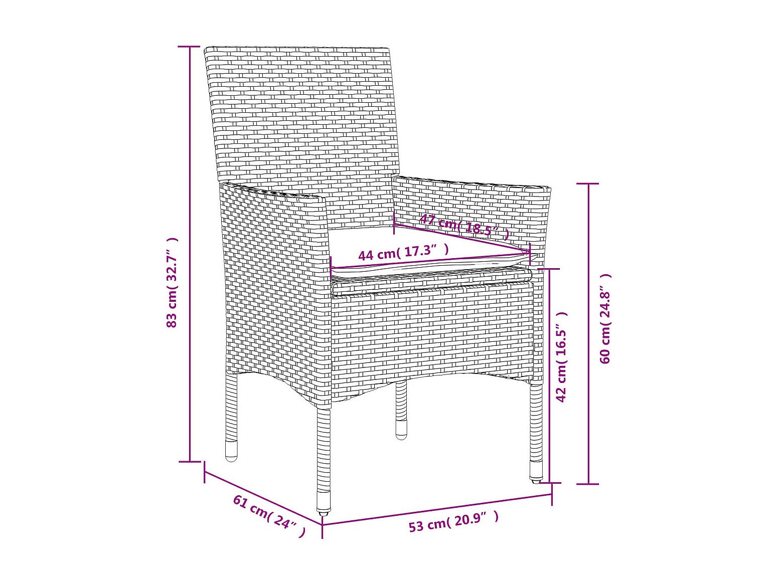 3-tlg. Garten-Essgruppe mit Kissen Poly Rattan Schwarz