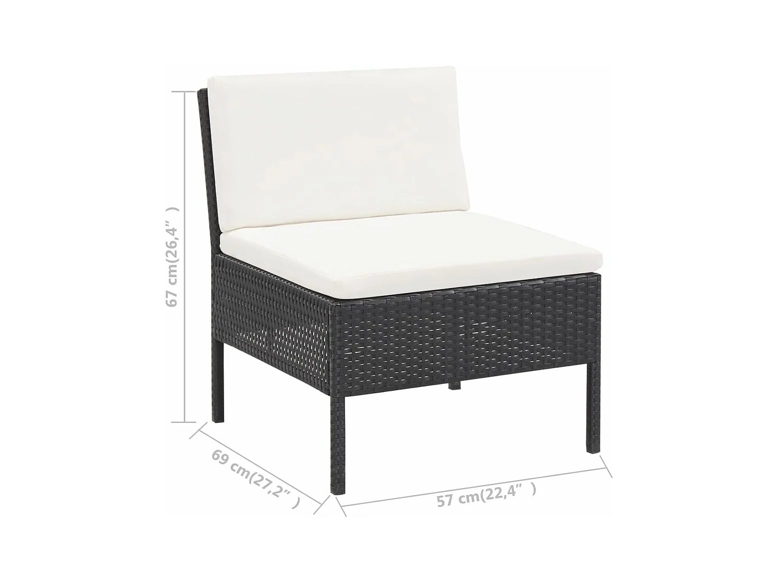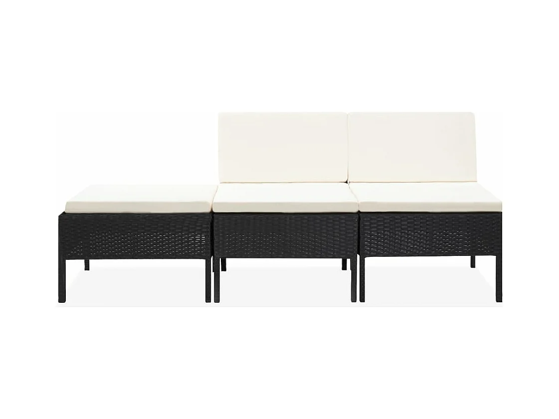 3-tlg. Garten-Lounge-Set mit Auflagen Poly Rattan Schwarz