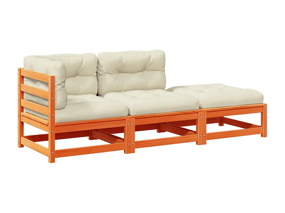 3-tlg. Garten-Sofagarnitur mit Kissen Wachsbraun Kiefernholz
