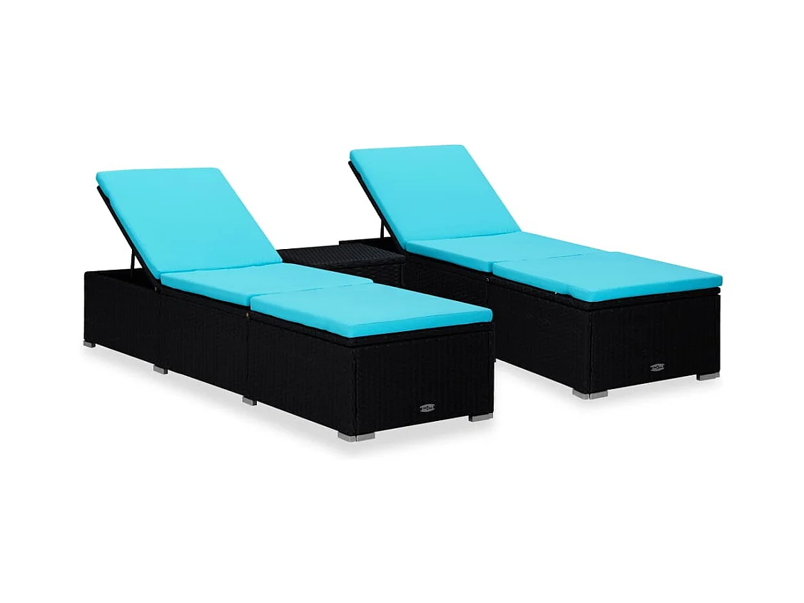 3-tlg. Garten-Sonnenliegen mit Teetisch Poly Rattan Schwarz