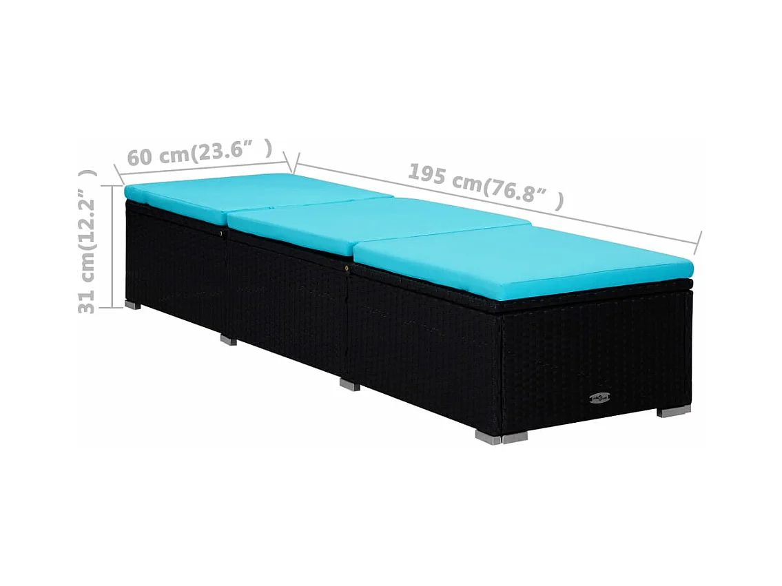 Sonnenliege mit Auflage Schwarz Poly-Rattan