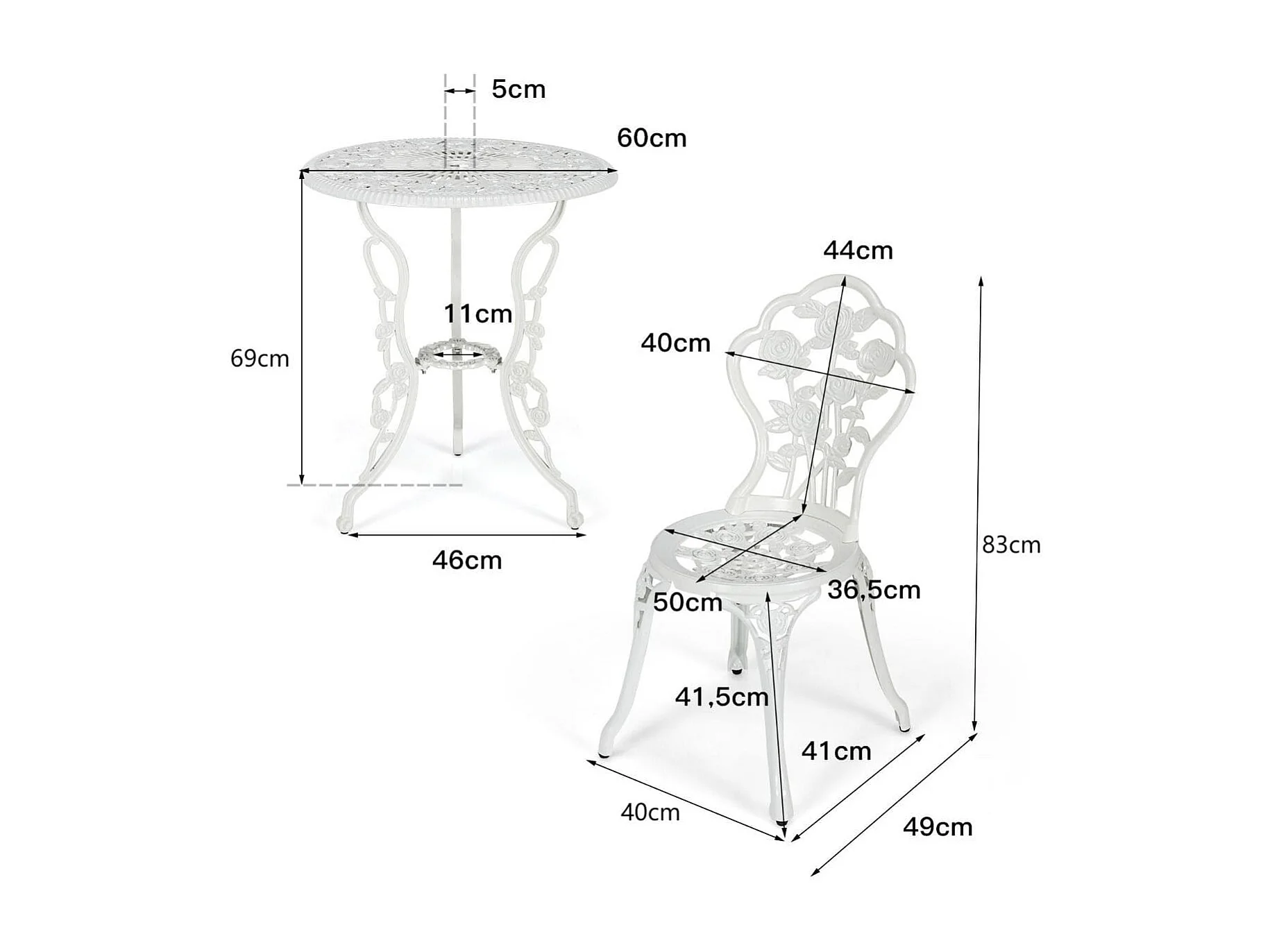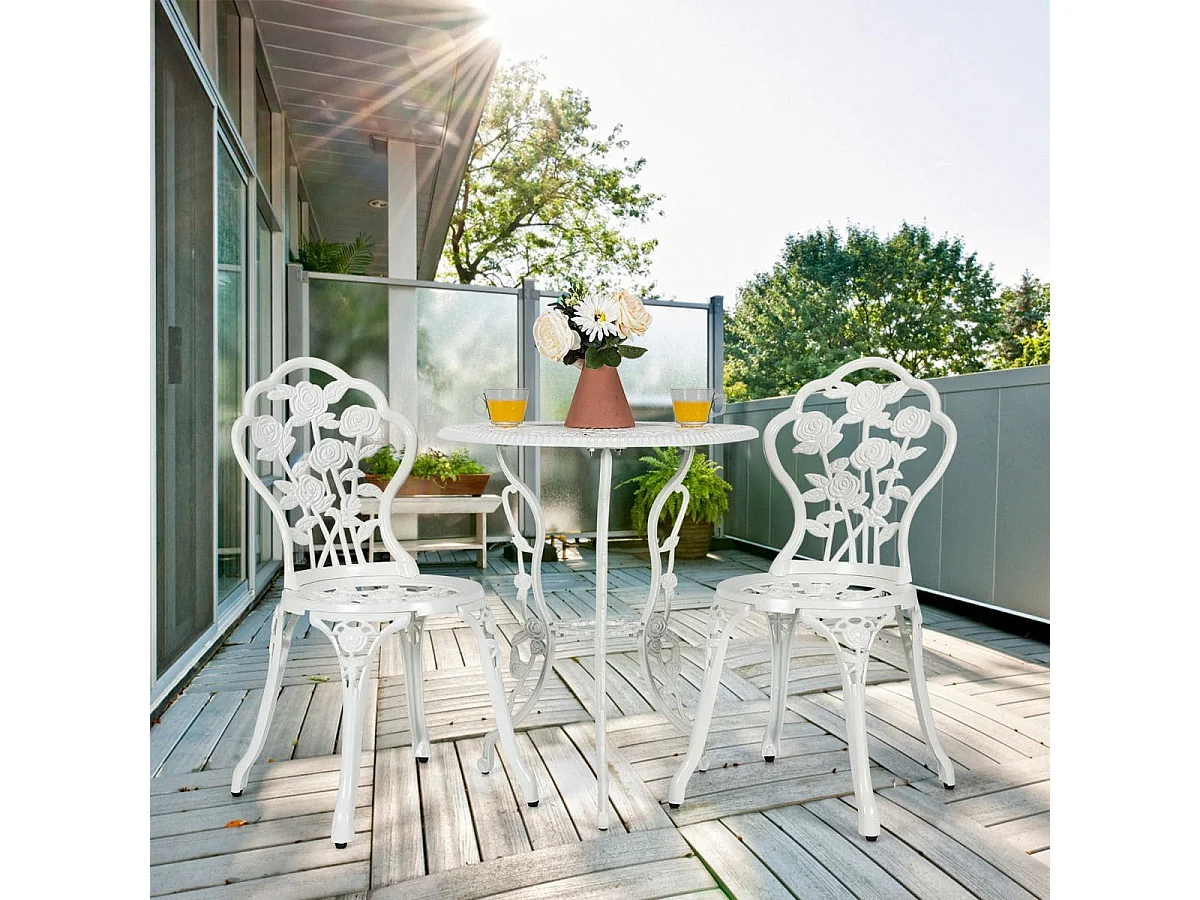 3-tlg. Gartenmöbel Set Balkonset mit 2 Stühle & Tisch aus Aluminiumguss & Gusseisen Weiß