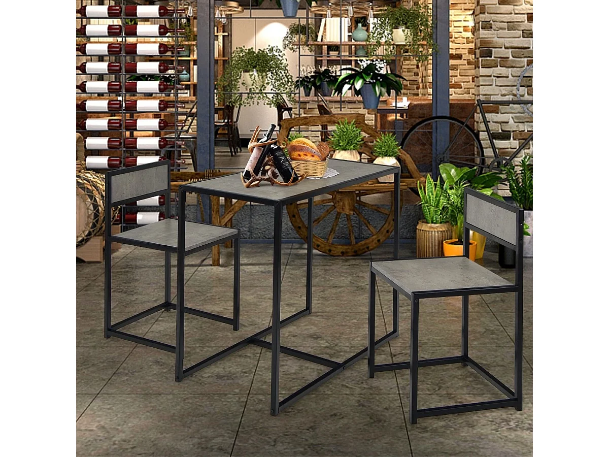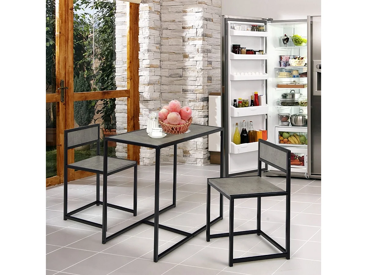 3 tlg. Küchentischset mit Kompakttisch & 2 Stühlen Holzwerkstoffe + Metall Grau