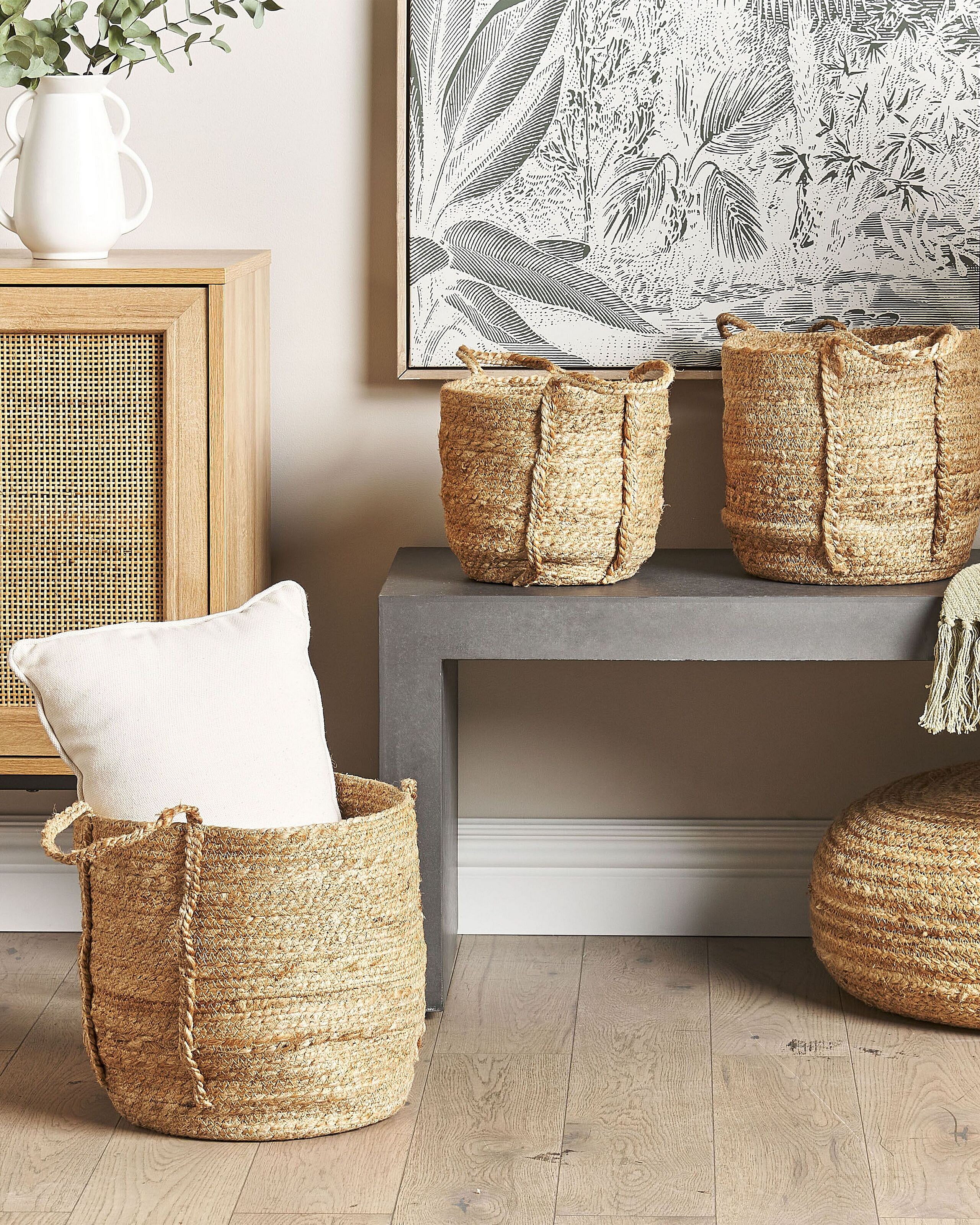 Set aus 3 handgefertigten natürlichen Jutekörben Ranwal