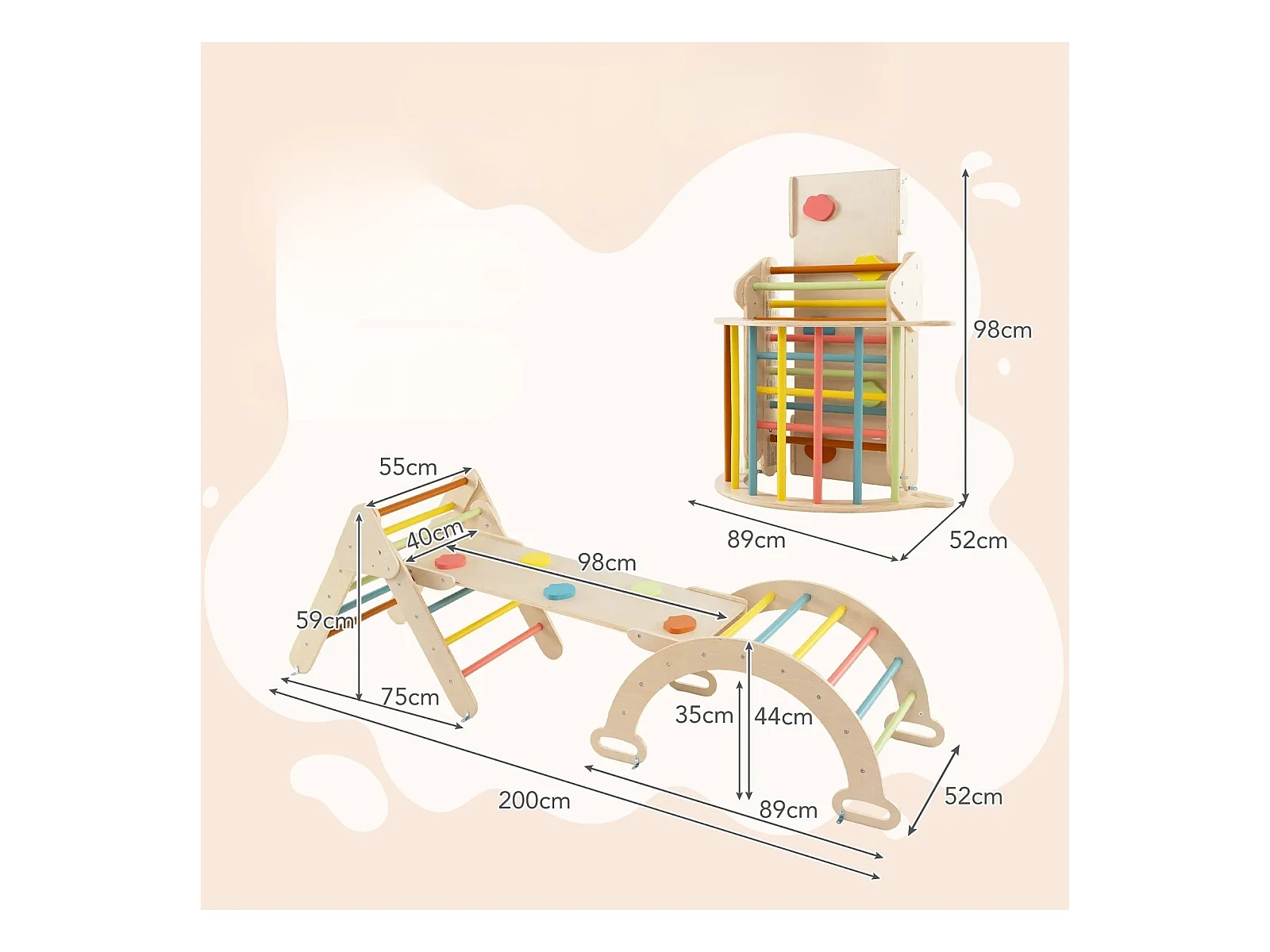 Dreieckiges Kletter-Spielzeugset aus Holz für Kleinkinder mit Kletterdreieck Bunt