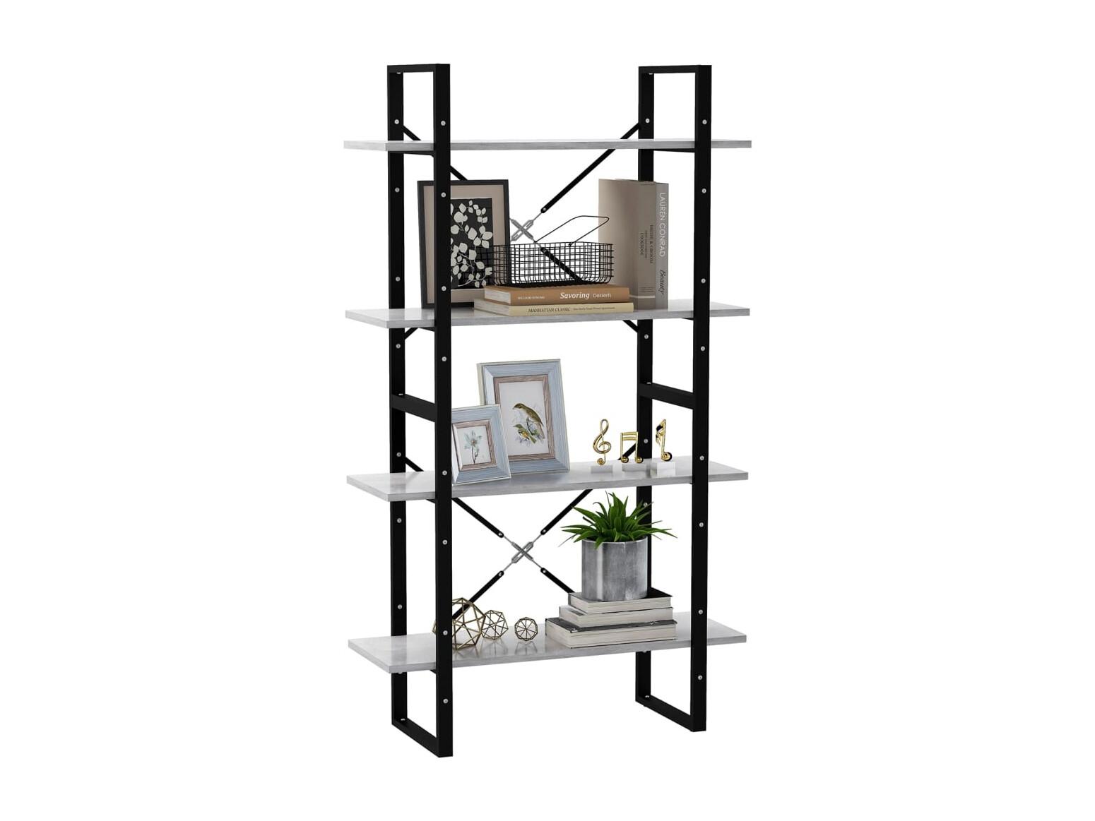 4-stöckiges Bücherregal, Betongrau, 80x30x140cm, Holzwerkstoff