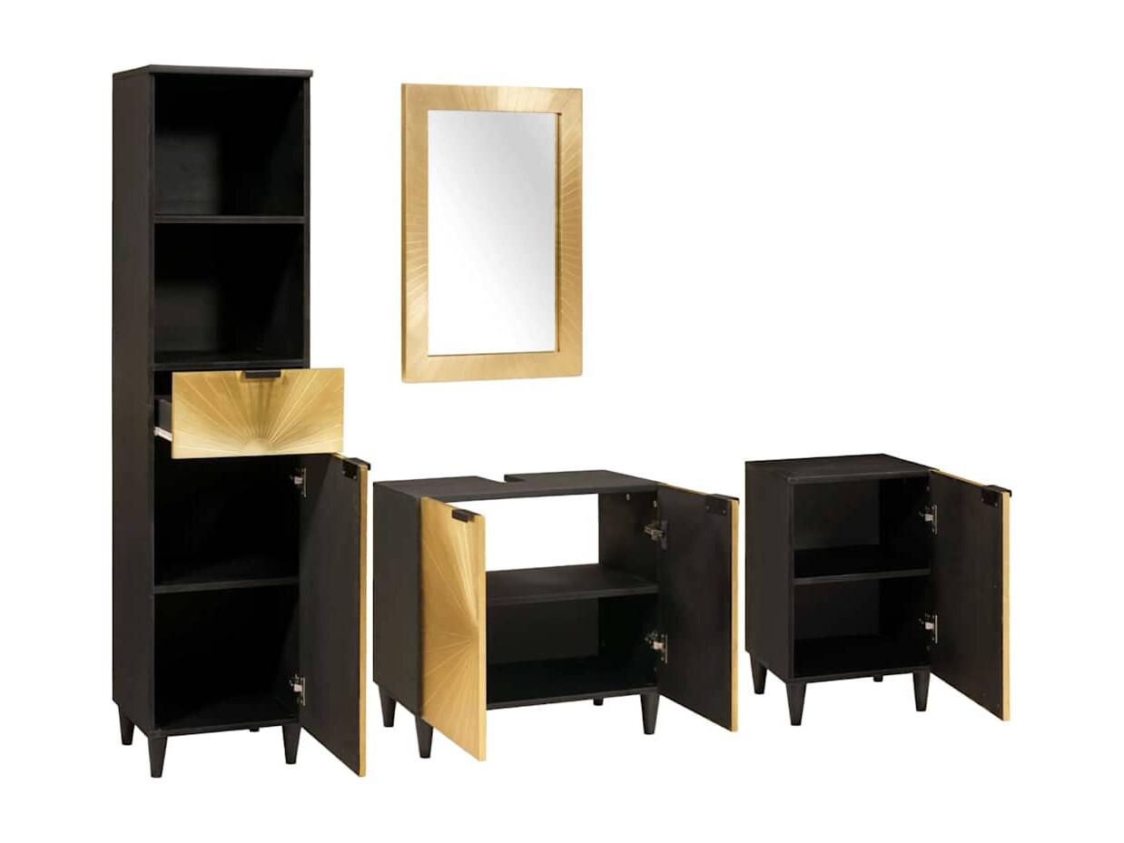 4-teilige Badezimmermöbel-Sets in Schwarz und Gold