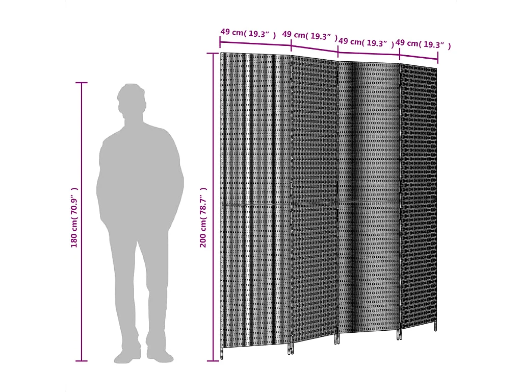 4-teilige Trennwand aus schwarzem Kunstharzgewebe