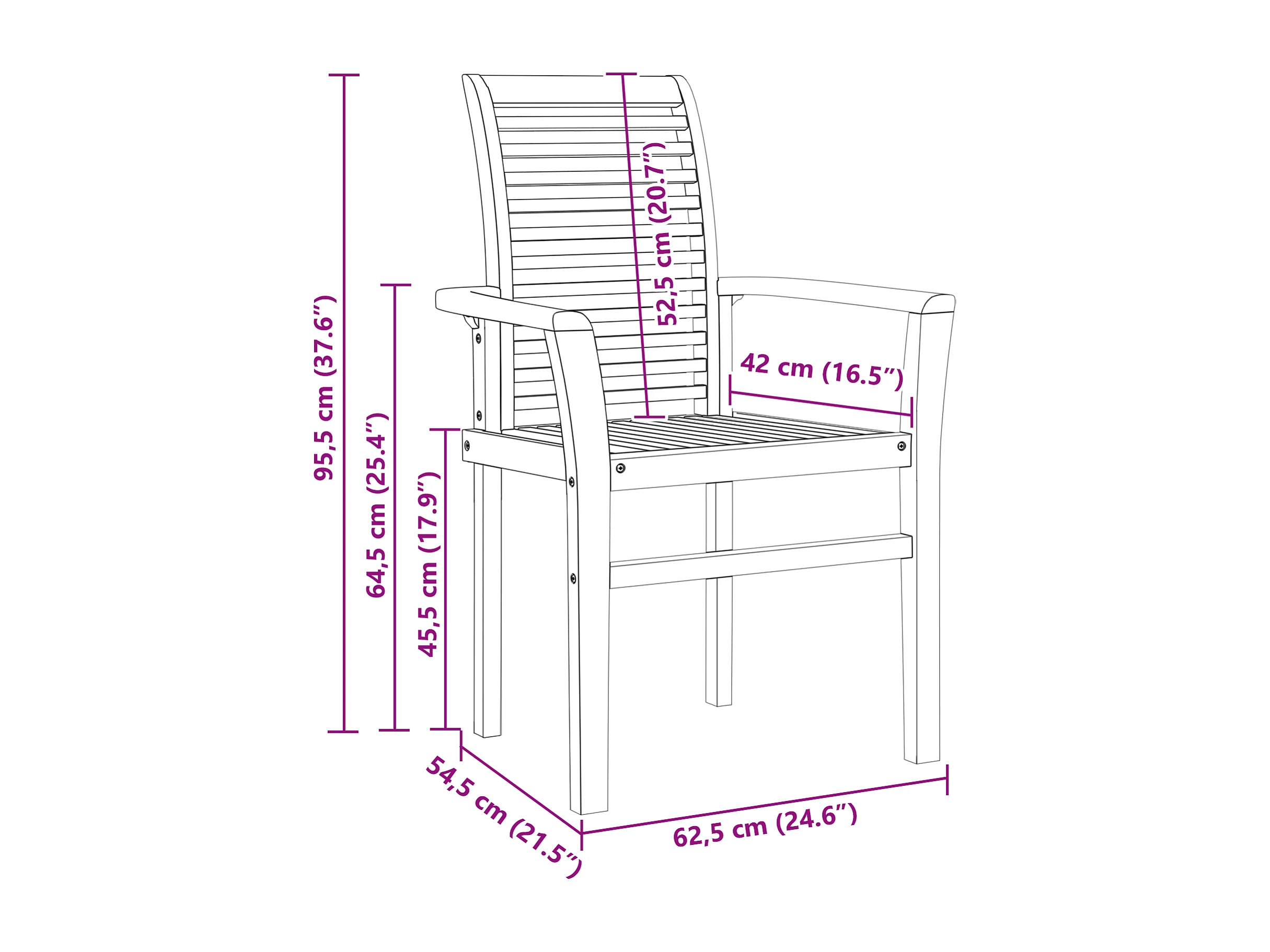 4-teiliger stapelbarer Gartenstuhl aus massivem Teakholz