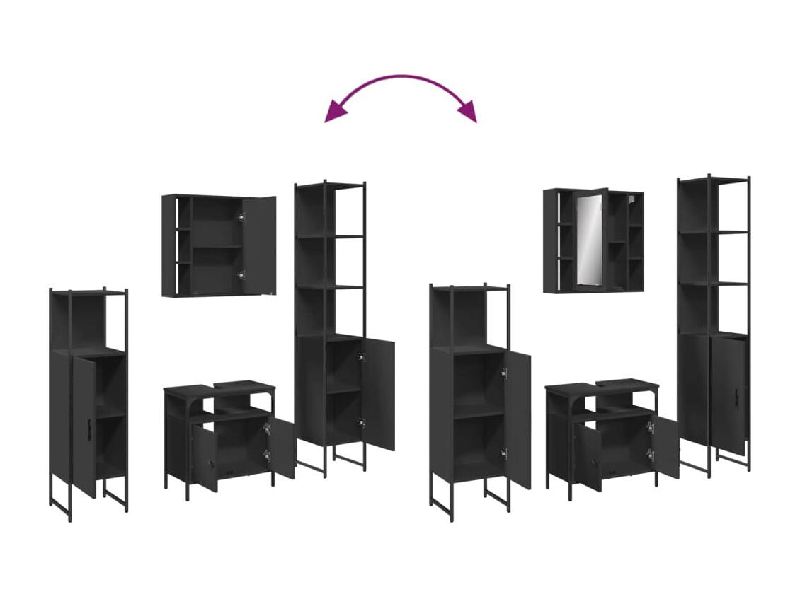 4-teiliges Badezimmerschrank-Set aus schwarzem Holzwerkstoff