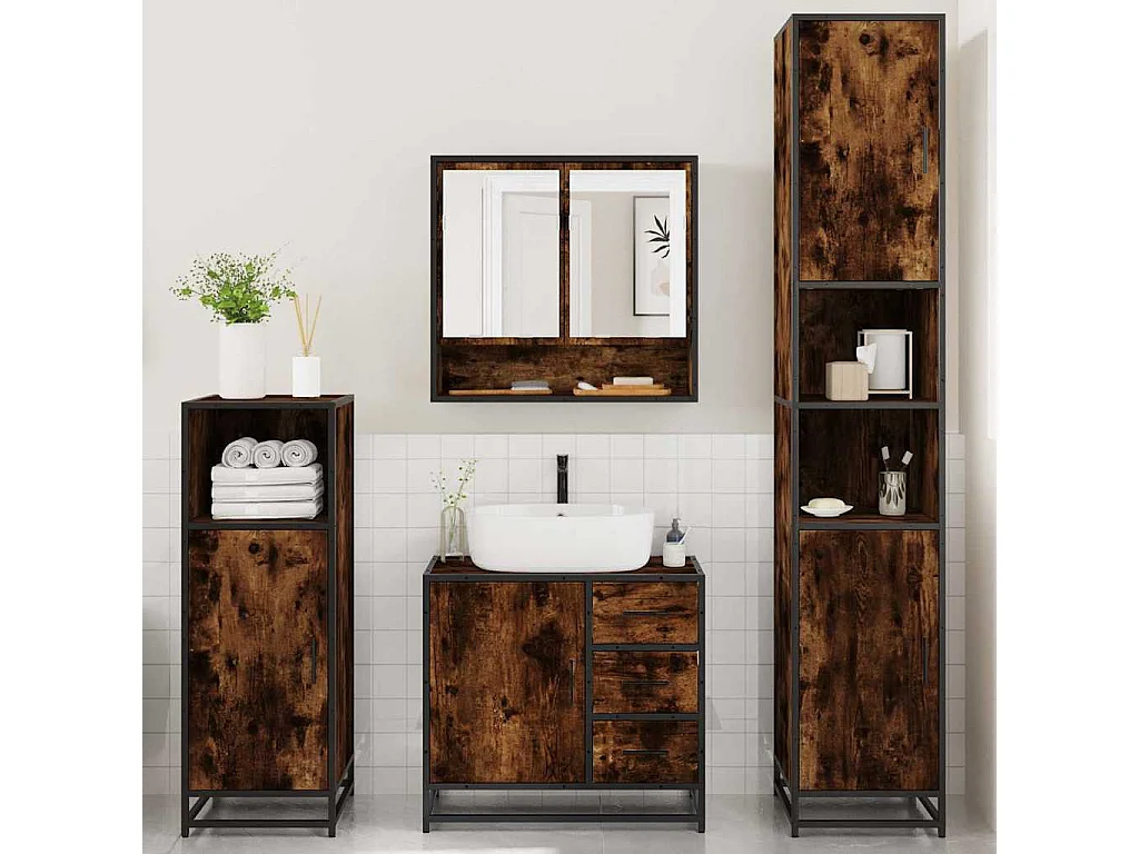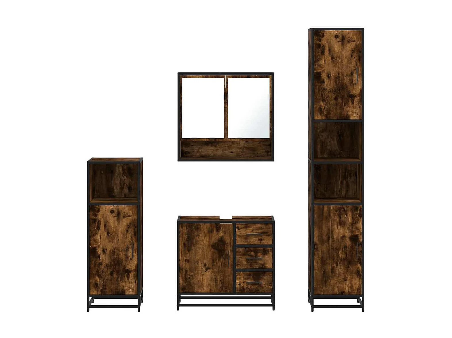4-teiliges Badmöbel-Set Räuchereiche Parkett