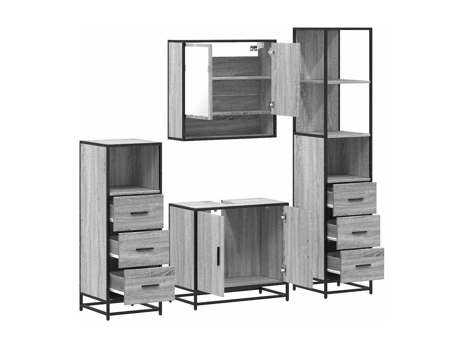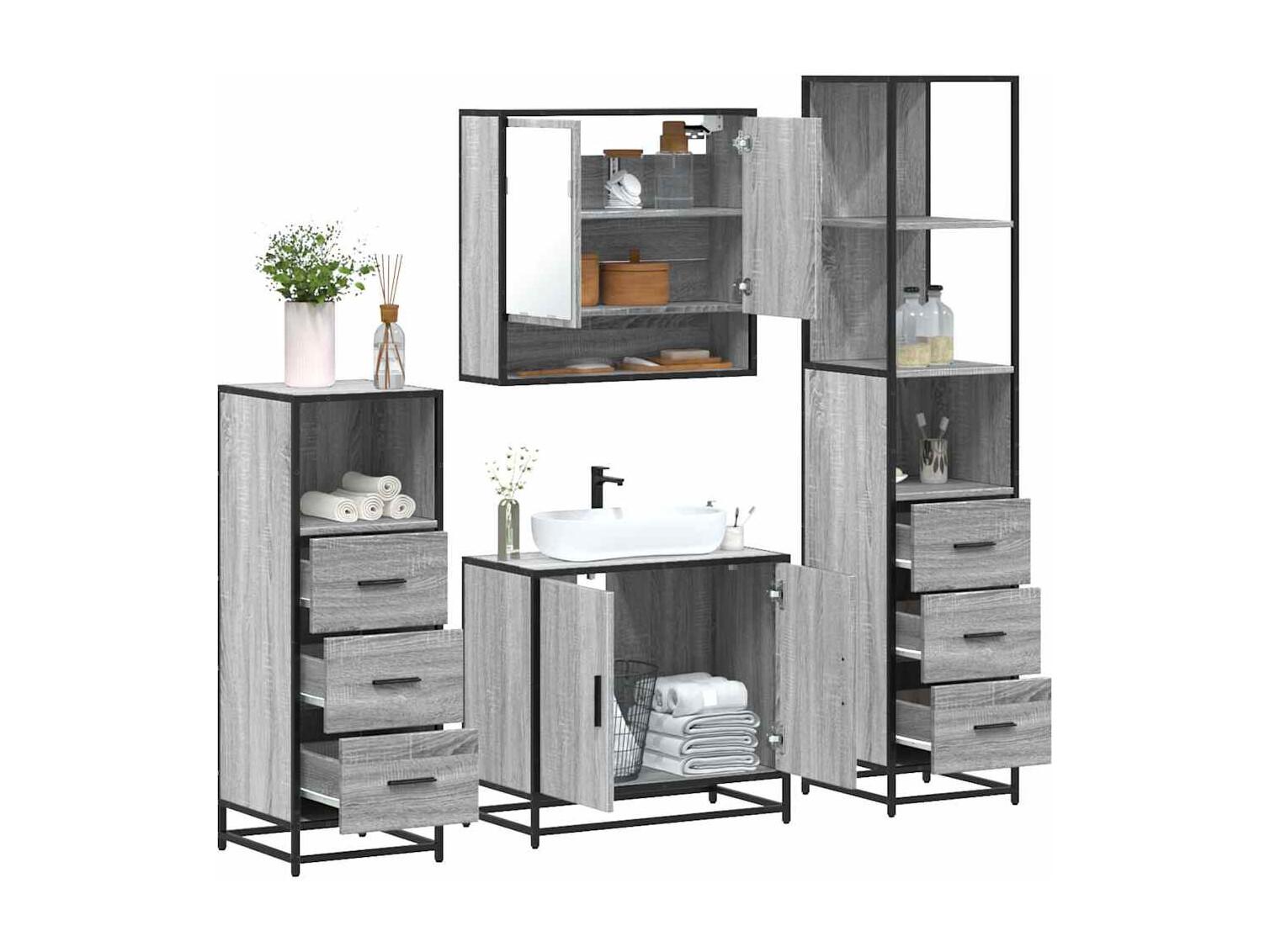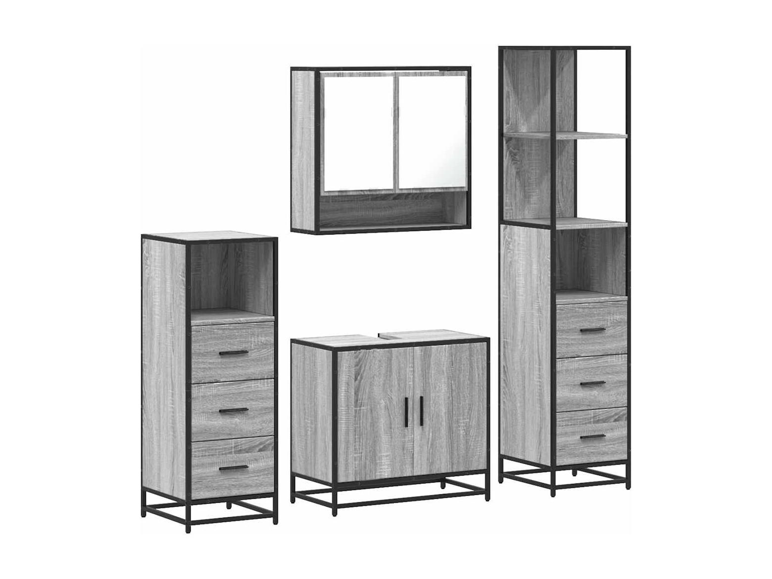 4-teiliges Badmöbel-Set Sonomagrau