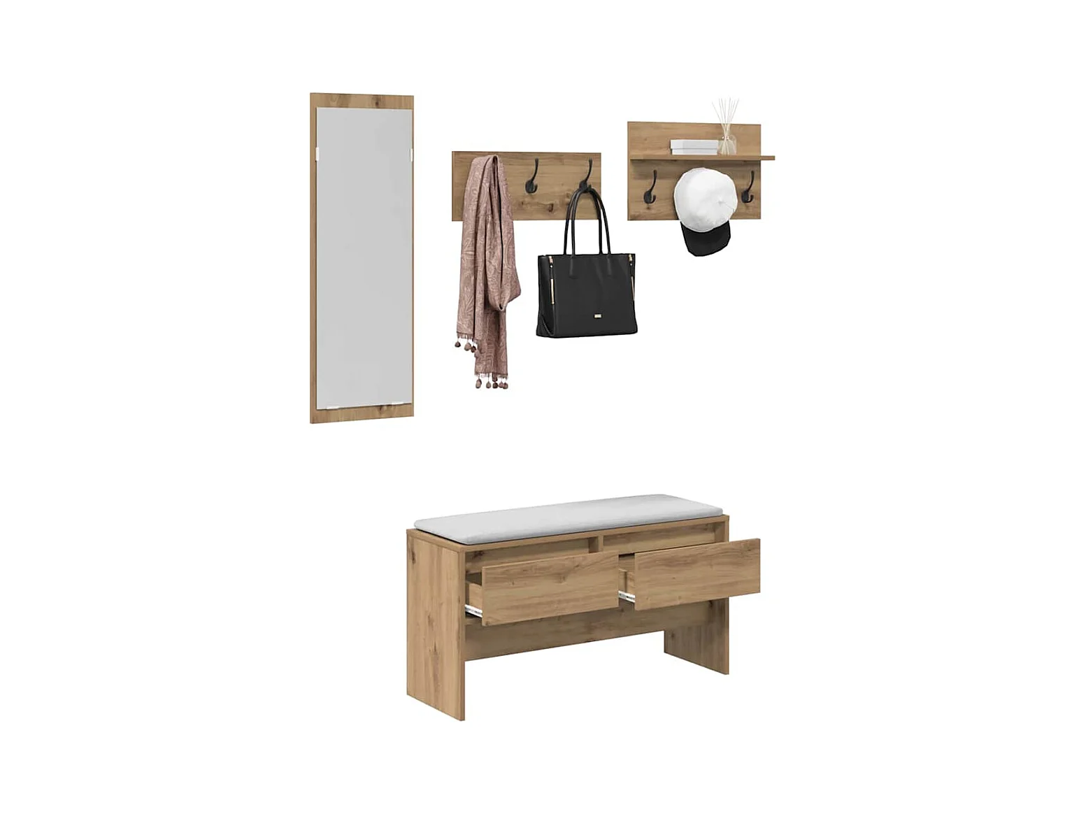 4-teiliges Flurmöbel-Set aus Eiche Artisan-Holz