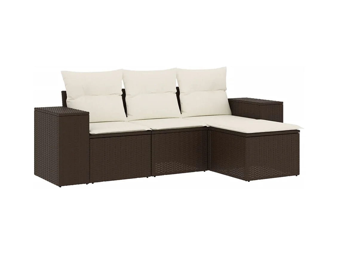 4-teiliges Gartenmöbelset mit braunen Kissen aus gewebtem Harz